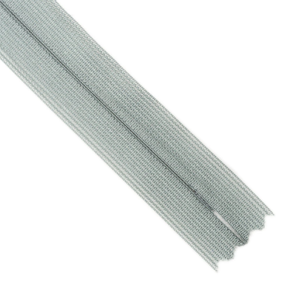 Invisible zip with lightweight mesh tape suitable for skirts, dresses, pants, soft furnishings and other applications where an unobtrusive zip is required. Discreet zip that fits into the seam with only the slim, elongated teardrop slider visible.