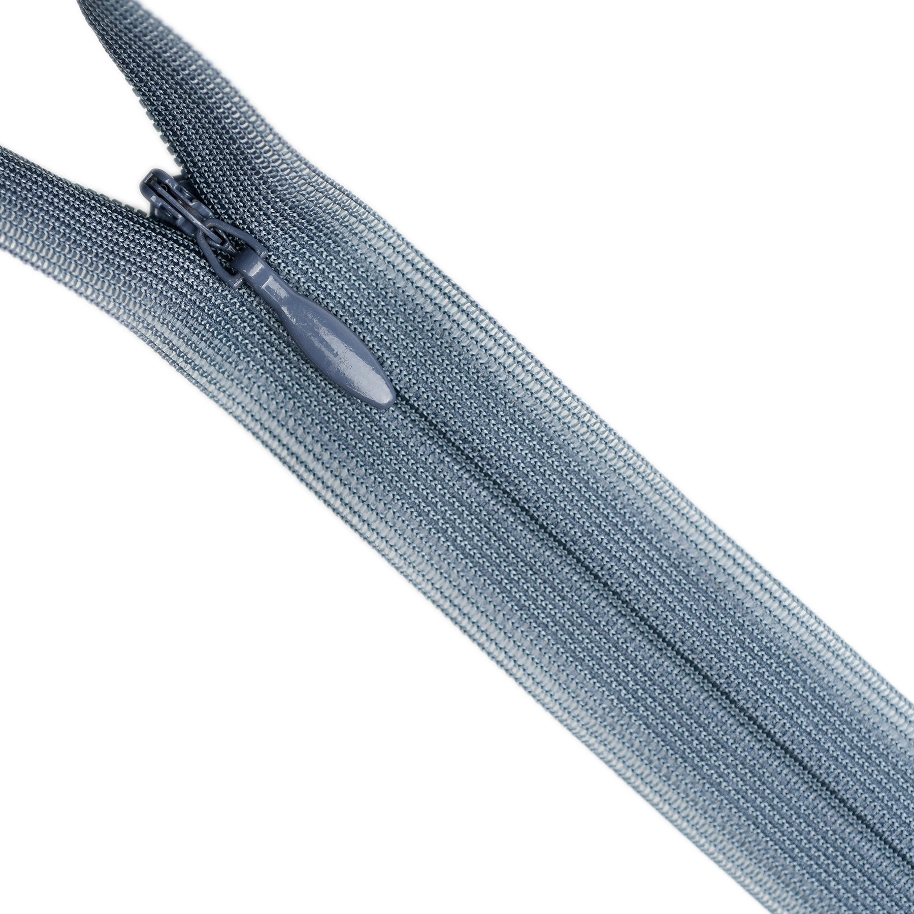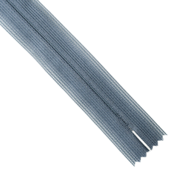 Invisible zip with lightweight mesh tape suitable for skirts, dresses, pants, soft furnishings and other applications where an unobtrusive zip is required. Discreet zip that fits into the seam with only the slim, elongated teardrop slider visible.