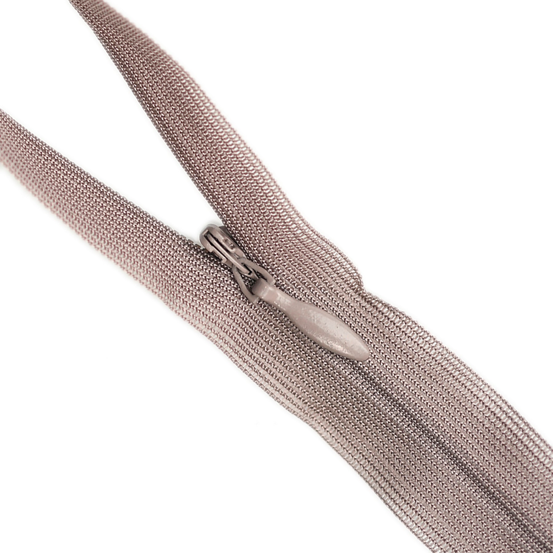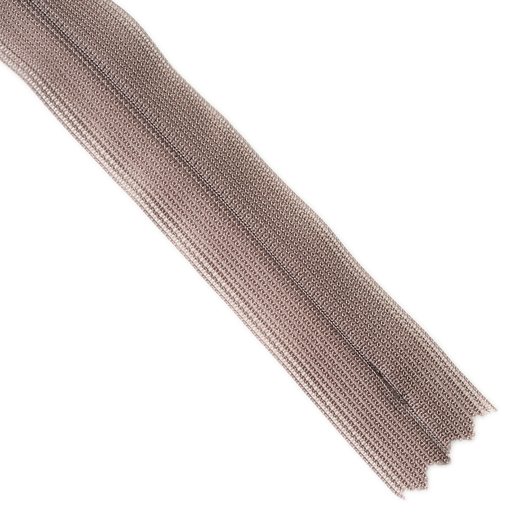Invisible zip with lightweight mesh tape suitable for skirts, dresses, pants, soft furnishings and other applications where an unobtrusive zip is required. Discreet zip that fits into the seam with only the slim, elongated teardrop slider visible.