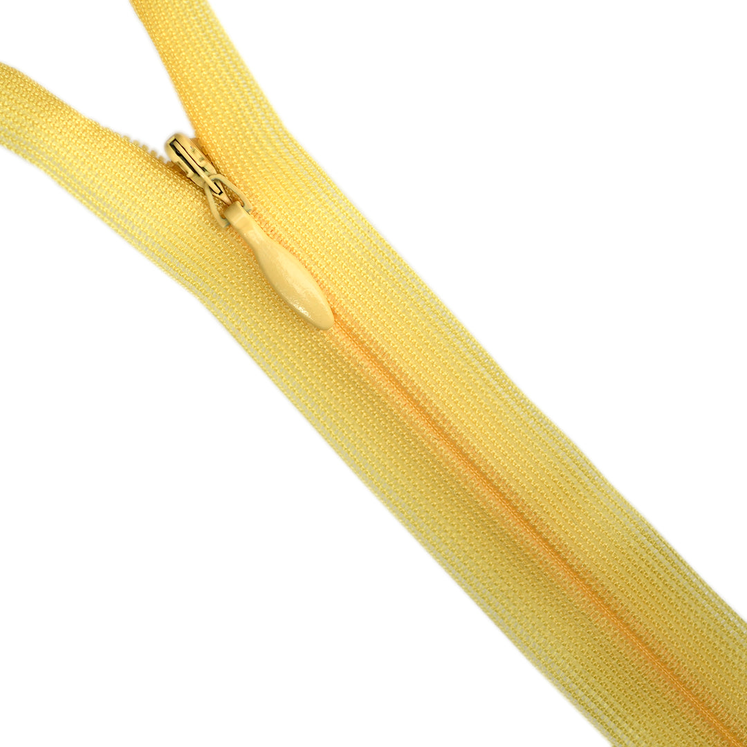 Invisible zip with lightweight mesh tape suitable for skirts, dresses, pants, soft furnishings and other applications where an unobtrusive zip is required. Discreet zip that fits into the seam with only the slim, elongated teardrop slider visible.