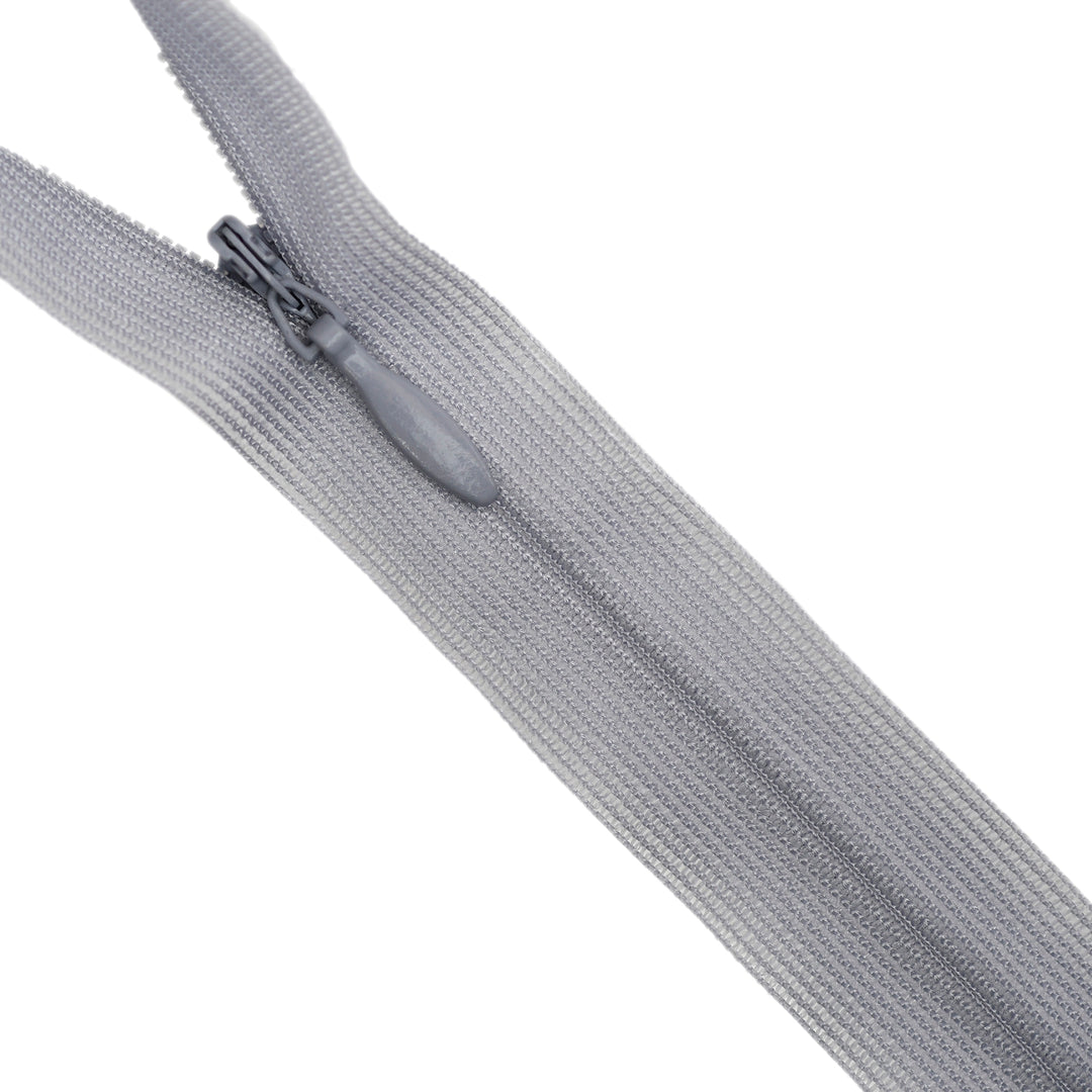 Invisible zip with lightweight mesh tape suitable for skirts, dresses, pants, soft furnishings and other applications where an unobtrusive zip is required. Discreet zip that fits into the seam with only the slim, elongated teardrop slider visible.