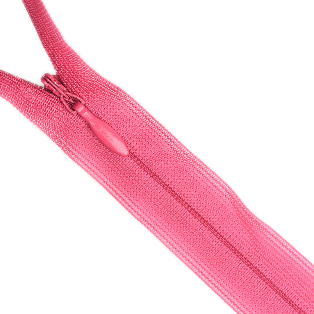 Invisible zip with lightweight mesh tape suitable for skirts, dresses, pants, soft furnishings and other applications where an unobtrusive zip is required. Discreet zip that fits into the seam with only the slim, elongated teardrop slider visible.