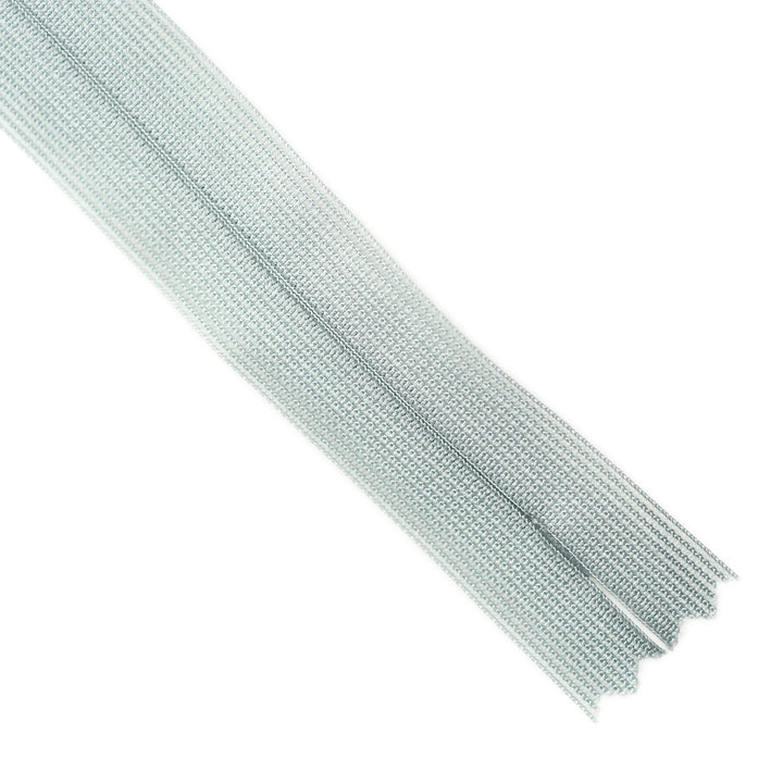 Invisible zip with lightweight mesh tape suitable for skirts, dresses, pants, soft furnishings and other applications where an unobtrusive zip is required. Discreet zip that fits into the seam with only the slim, elongated teardrop slider visible.