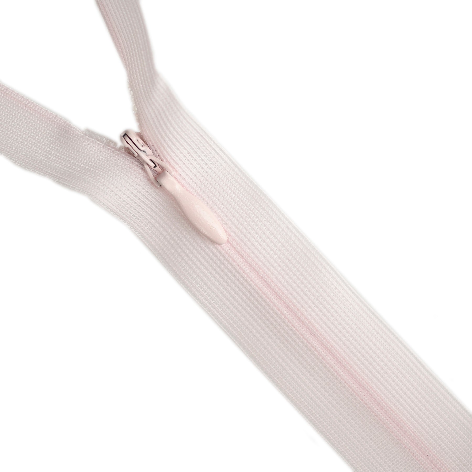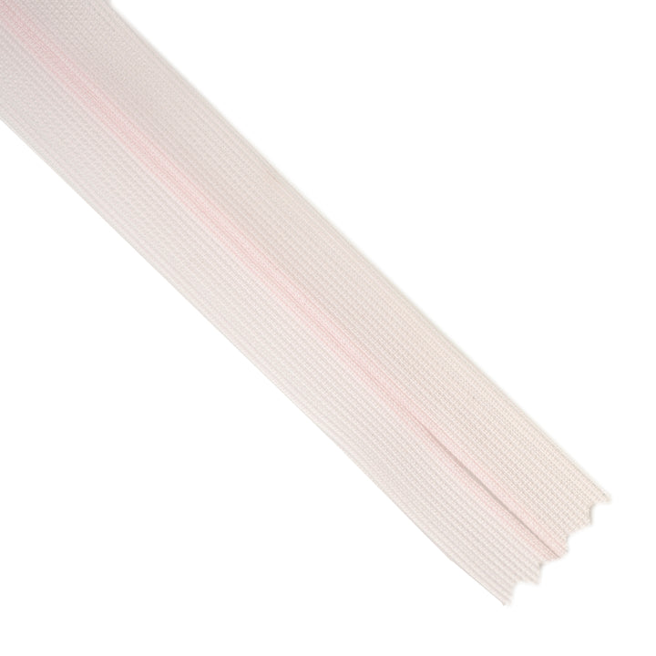 Invisible zip with lightweight mesh tape suitable for skirts, dresses, pants, soft furnishings and other applications where an unobtrusive zip is required. Discreet zip that fits into the seam with only the slim, elongated teardrop slider visible.