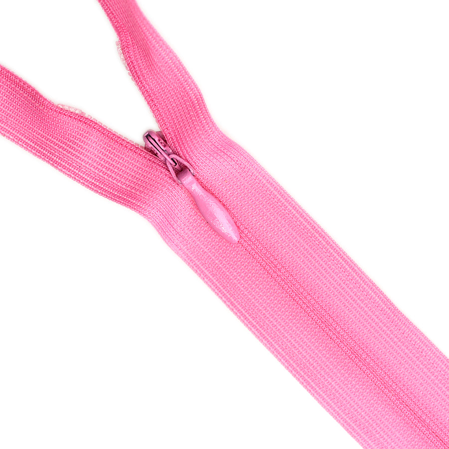 Invisible zip with lightweight mesh tape suitable for skirts, dresses, pants, soft furnishings and other applications where an unobtrusive zip is required. Discreet zip that fits into the seam with only the slim, elongated teardrop slider visible.