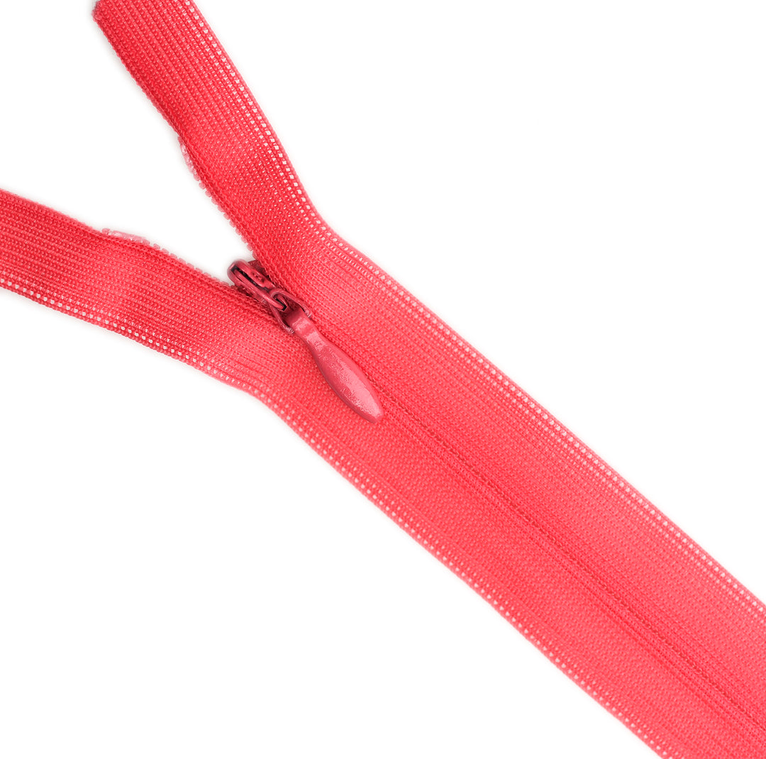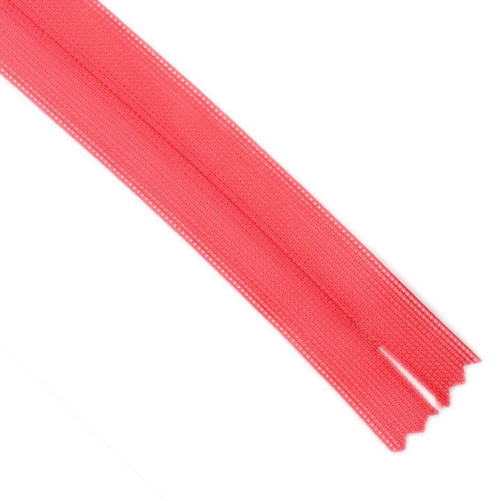 Invisible zip with lightweight mesh tape suitable for skirts, dresses, pants, soft furnishings and other applications where an unobtrusive zip is required. Discreet zip that fits into the seam with only the slim, elongated teardrop slider visible.