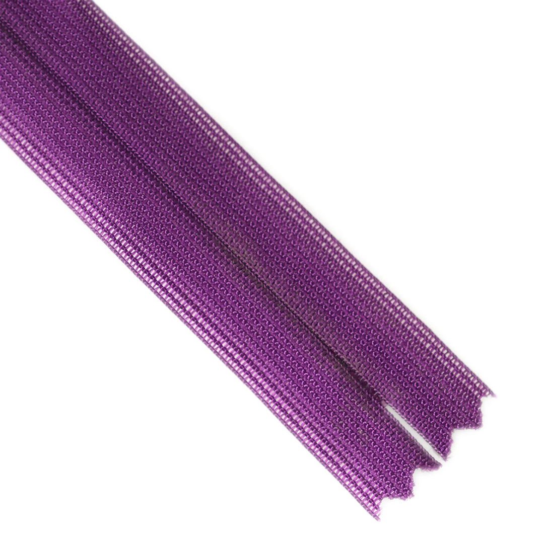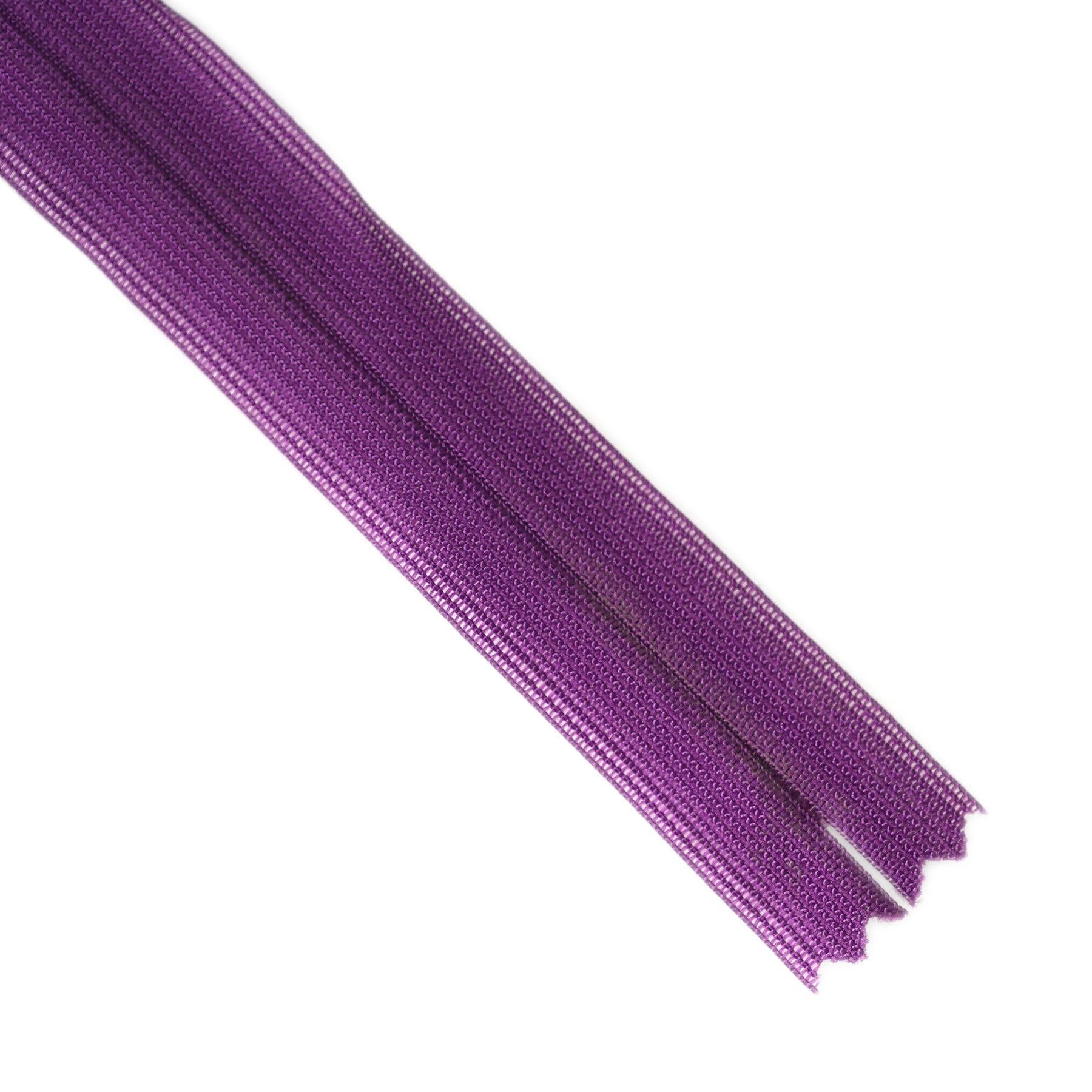 Invisible zip manufactured by YKK with lightweight mesh tape suitable for skirts, dresses, pants, soft furnishings and other applications where an unobtrusive zip is required. Discreet zip that fits into the seam with only the slim, elongated teardrop slider visible.