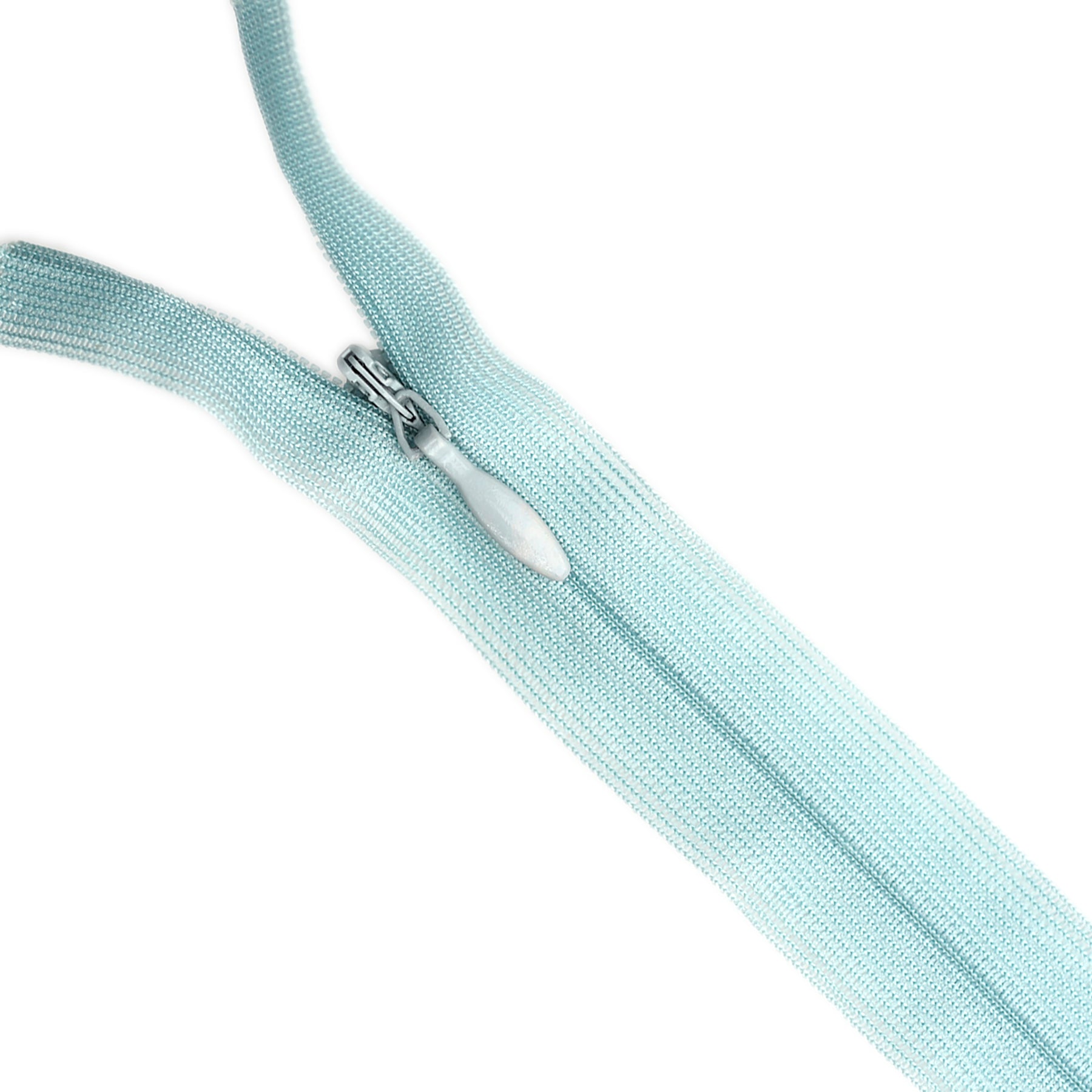 Invisible zip with lightweight mesh tape suitable for skirts, dresses, pants, soft furnishings and other applications where an unobtrusive zip is required. Discreet zip that fits into the seam with only the slim, elongated teardrop slider visible.