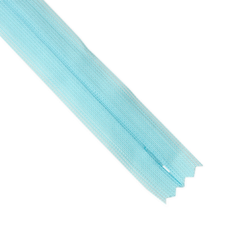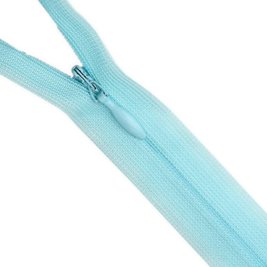Invisible zip with lightweight mesh tape suitable for skirts, dresses, pants, soft furnishings and other applications where an unobtrusive zip is required. Discreet zip that fits into the seam with only the slim, elongated teardrop slider visible.