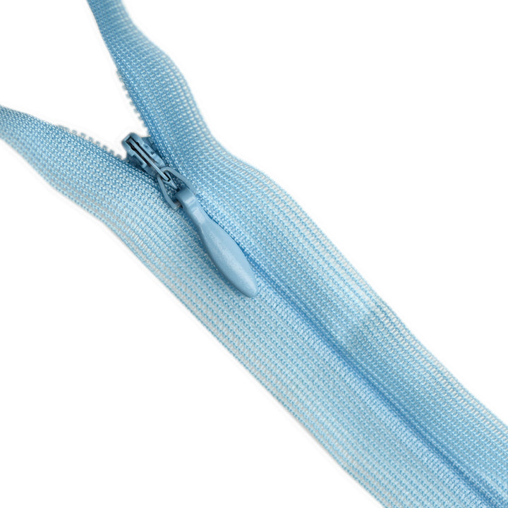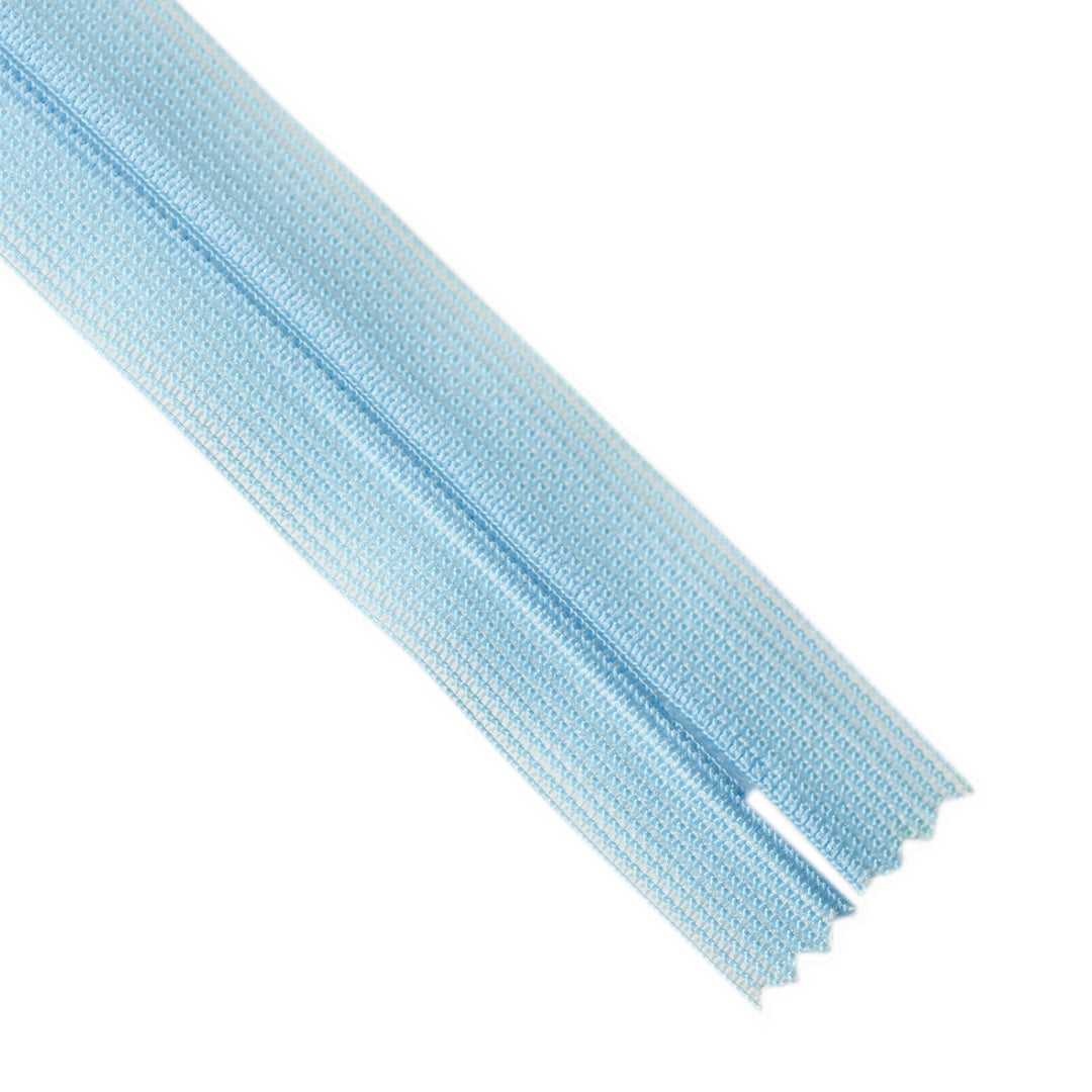 Invisible zip with lightweight mesh tape suitable for skirts, dresses, pants, soft furnishings and other applications where an unobtrusive zip is required. Discreet zip that fits into the seam with only the slim, elongated teardrop slider visible.