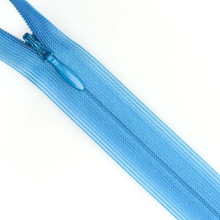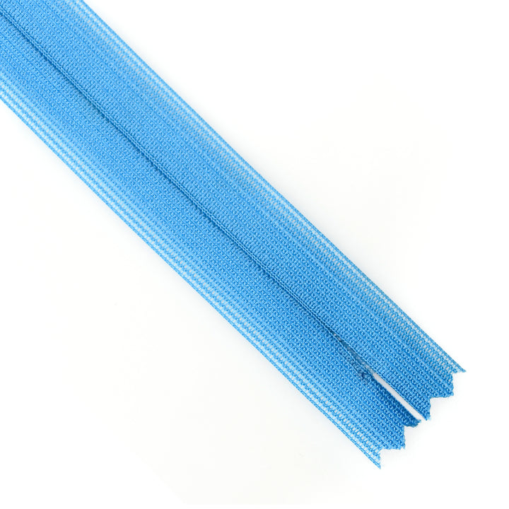 Invisible zip with lightweight mesh tape suitable for skirts, dresses, pants, soft furnishings and other applications where an unobtrusive zip is required. Discreet zip that fits into the seam with only the slim, elongated teardrop slider visible.