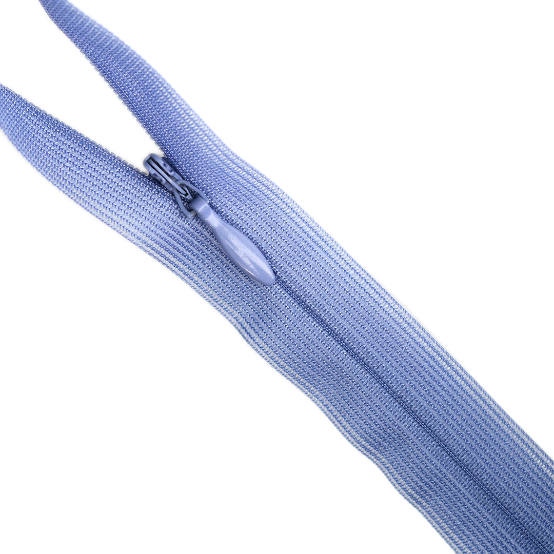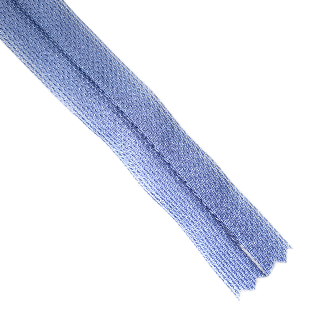 Invisible zip with lightweight mesh tape suitable for skirts, dresses, pants, soft furnishings and other applications where an unobtrusive zip is required. Discreet zip that fits into the seam with only the slim, elongated teardrop slider visible.