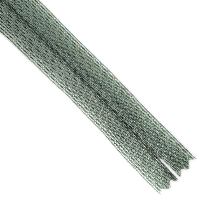 Invisible zip with lightweight mesh tape suitable for skirts, dresses, pants, soft furnishings and other applications where an unobtrusive zip is required. Discreet zip that fits into the seam with only the slim, elongated teardrop slider visible.