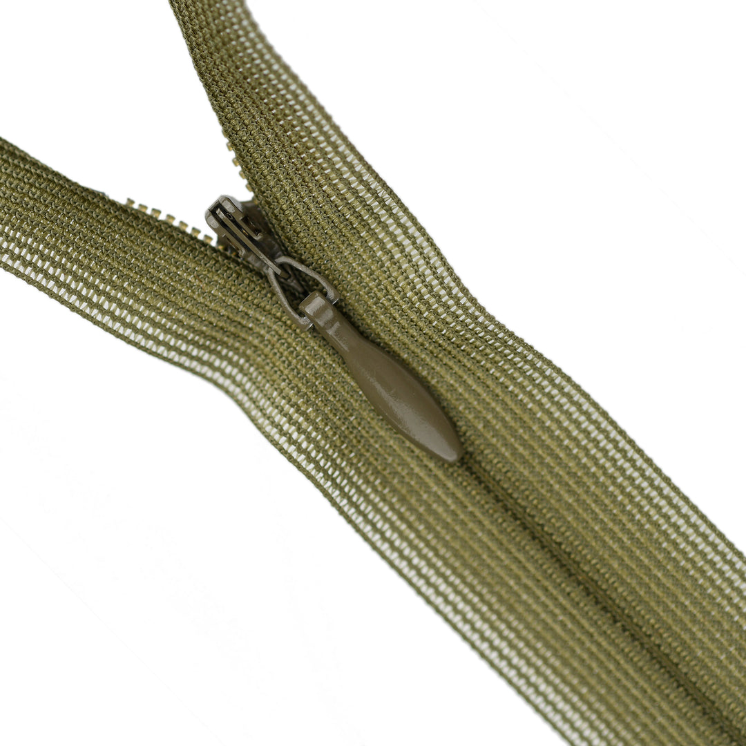 Invisible zip with lightweight mesh tape suitable for skirts, dresses, pants, soft furnishings and other applications where an unobtrusive zip is required. Discreet zip that fits into the seam with only the slim, elongated teardrop slider visible.