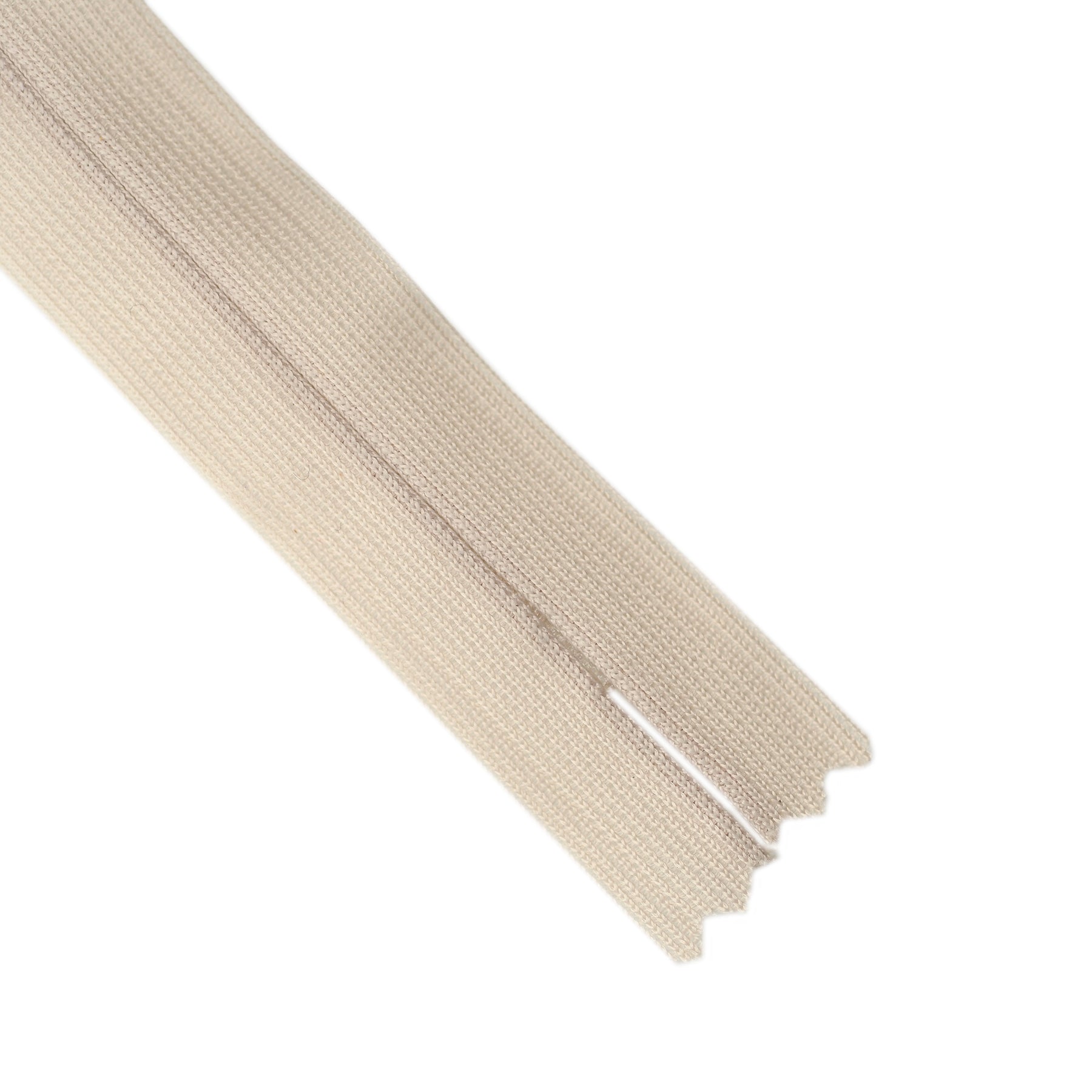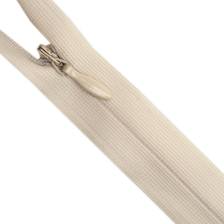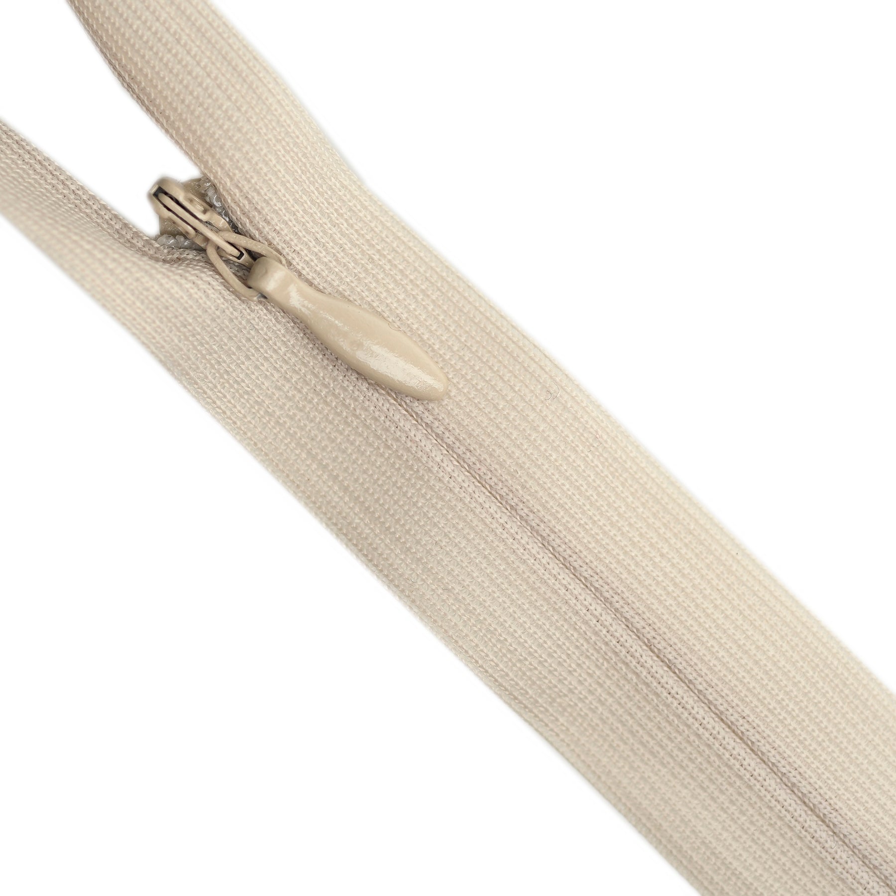 Invisible zip with lightweight mesh tape suitable for skirts, dresses, pants, soft furnishings and other applications where an unobtrusive zip is required. Discreet zip that fits into the seam with only the slim, elongated teardrop slider visible.