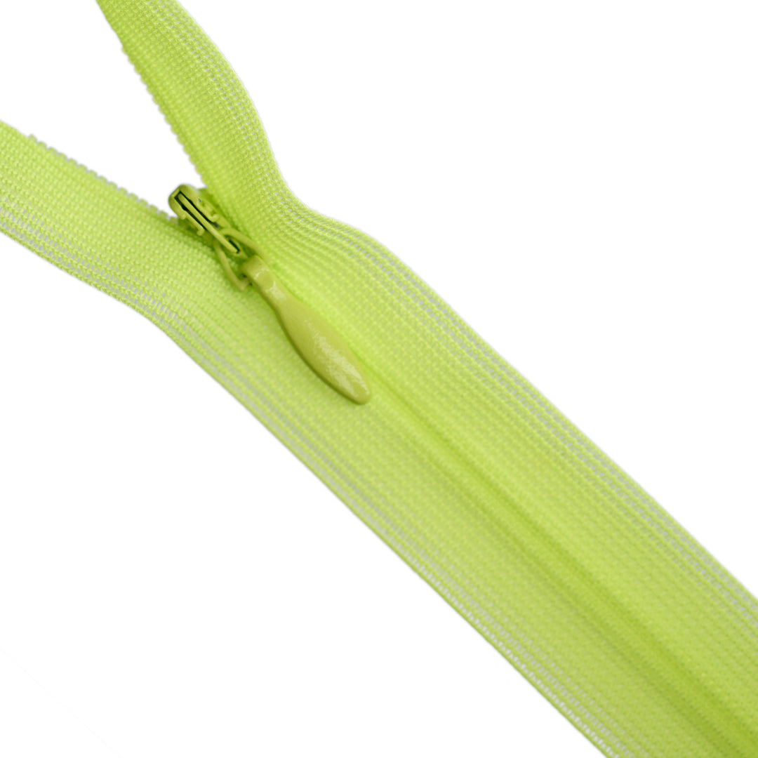 Invisible zip with lightweight mesh tape suitable for skirts, dresses, pants, soft furnishings and other applications where an unobtrusive zip is required. Discreet zip that fits into the seam with only the slim, elongated teardrop slider visible.