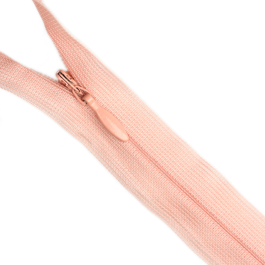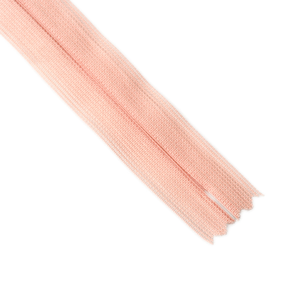 Invisible zip with lightweight mesh tape suitable for skirts, dresses, pants, soft furnishings and other applications where an unobtrusive zip is required. Discreet zip that fits into the seam with only the slim, elongated teardrop slider visible.