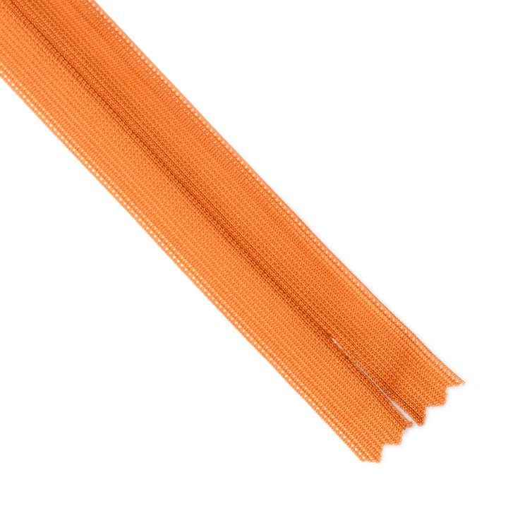 Invisible zip with lightweight mesh tape suitable for skirts, dresses, pants, soft furnishings and other applications where an unobtrusive zip is required. Discreet zip that fits into the seam with only the slim, elongated teardrop slider visible.