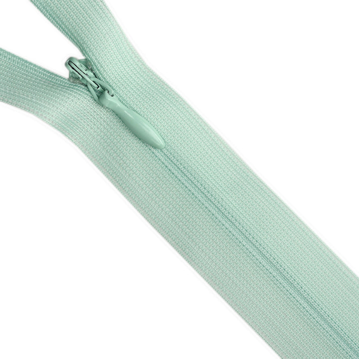 Invisible zip with lightweight mesh tape suitable for skirts, dresses, pants, soft furnishings and other applications where an unobtrusive zip is required. Discreet zip that fits into the seam with only the slim, elongated teardrop slider visible.