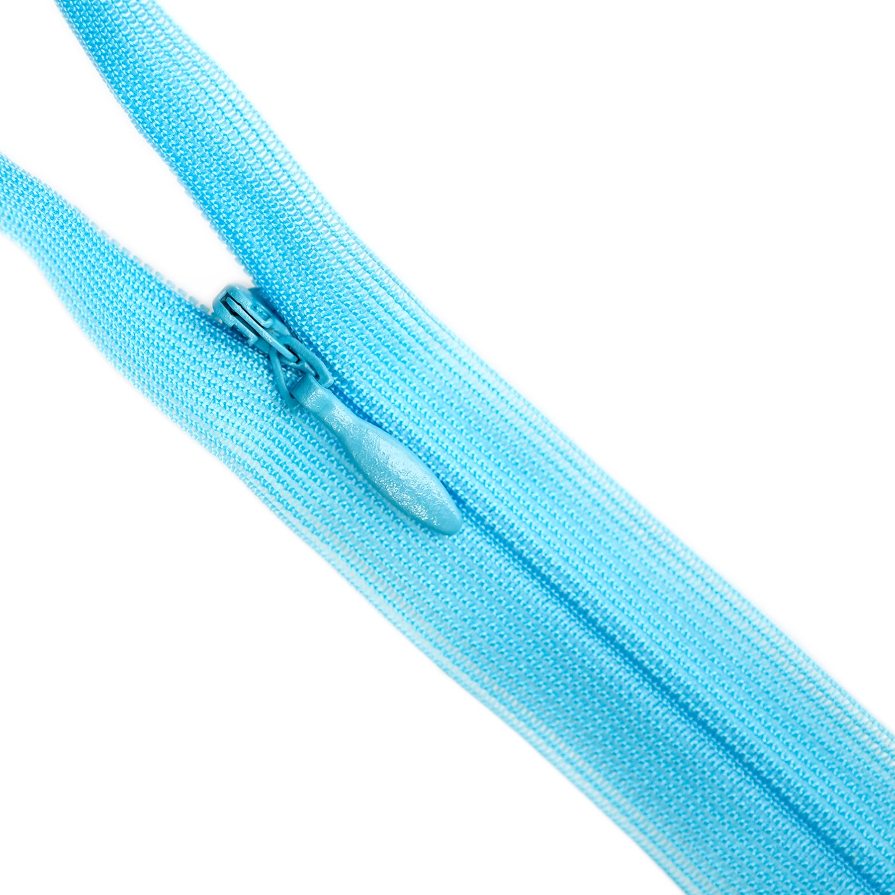 Invisible zip with lightweight mesh tape suitable for skirts, dresses, pants, soft furnishings and other applications where an unobtrusive zip is required. Discreet zip that fits into the seam with only the slim, elongated teardrop slider visible.