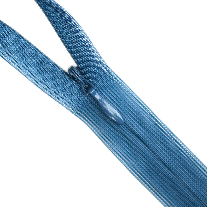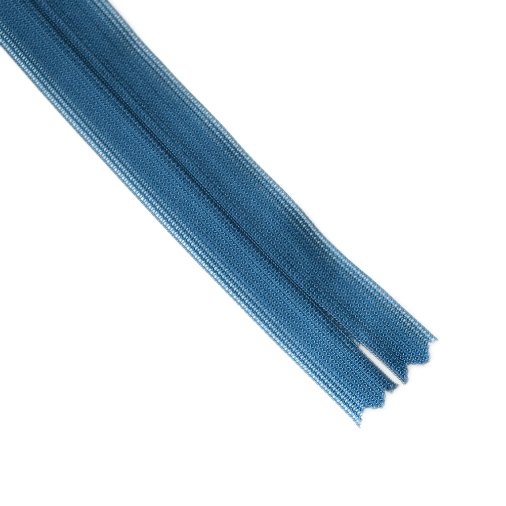 Invisible zip with lightweight mesh tape suitable for skirts, dresses, pants, soft furnishings and other applications where an unobtrusive zip is required. Discreet zip that fits into the seam with only the slim, elongated teardrop slider visible.