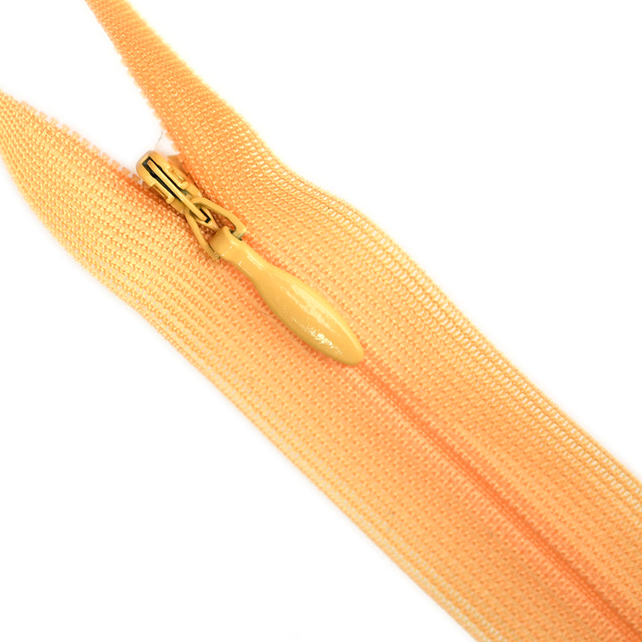 Invisible zip with lightweight mesh tape suitable for skirts, dresses, pants, soft furnishings and other applications where an unobtrusive zip is required. Discreet zip that fits into the seam with only the slim, elongated teardrop slider visible.