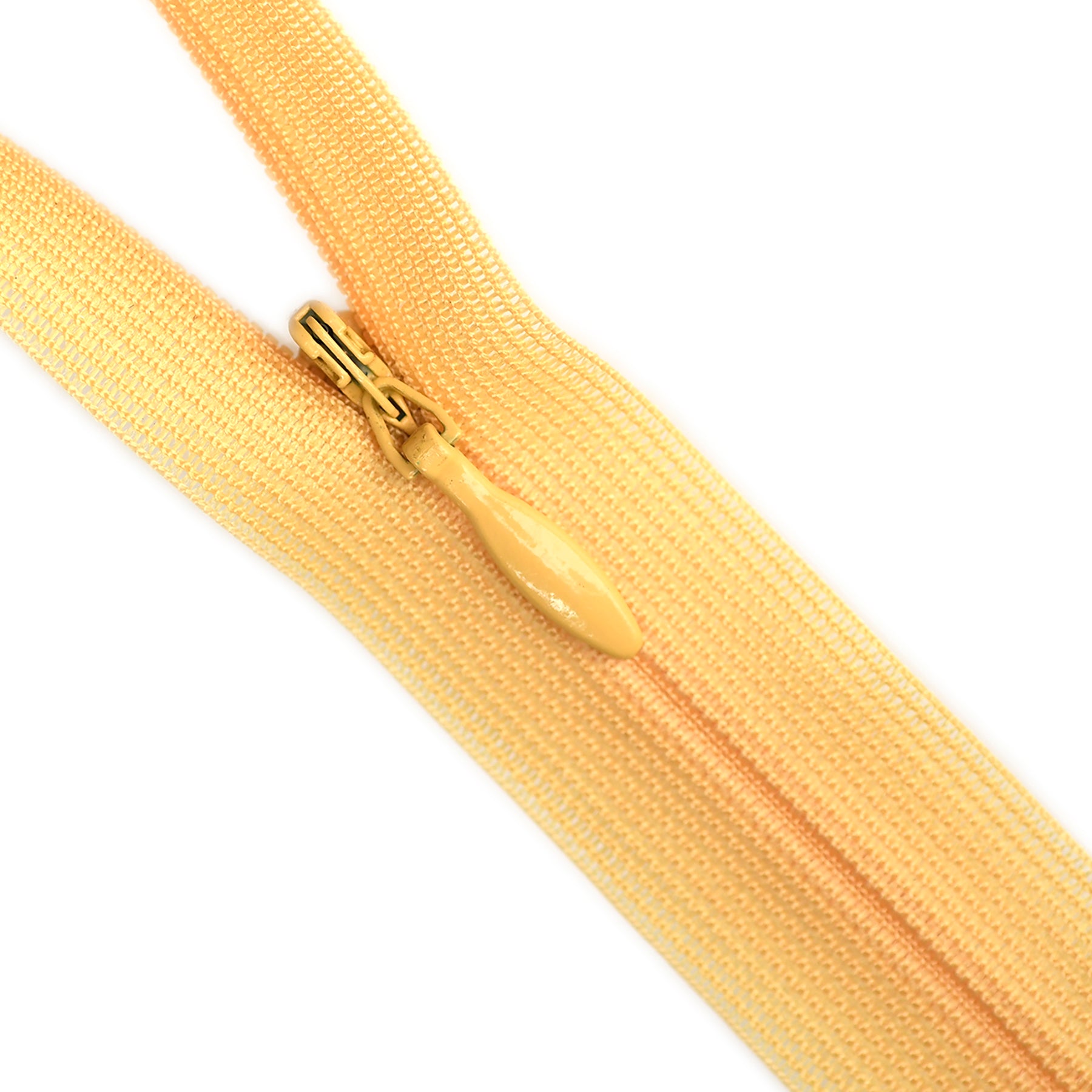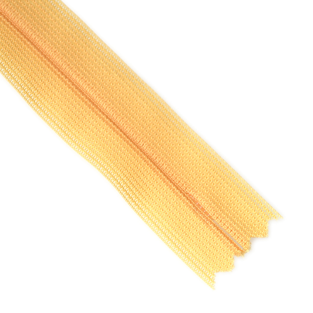 Invisible zip with lightweight mesh tape suitable for skirts, dresses, pants, soft furnishings and other applications where an unobtrusive zip is required. Discreet zip that fits into the seam with only the slim, elongated teardrop slider visible.
