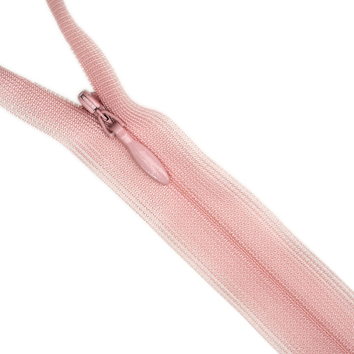 Invisible zip manufactured by YKK with lightweight mesh tape suitable for skirts, dresses, pants, soft furnishings and other applications where an unobtrusive zip is required. Discreet zip that fits into the seam with only the slim, elongated teardrop slider visible. For bulk quantities and custom enquiries, please contact our Special Orders team. Images of colour and size are indicative only. Variations may occur due to device and screen settings.