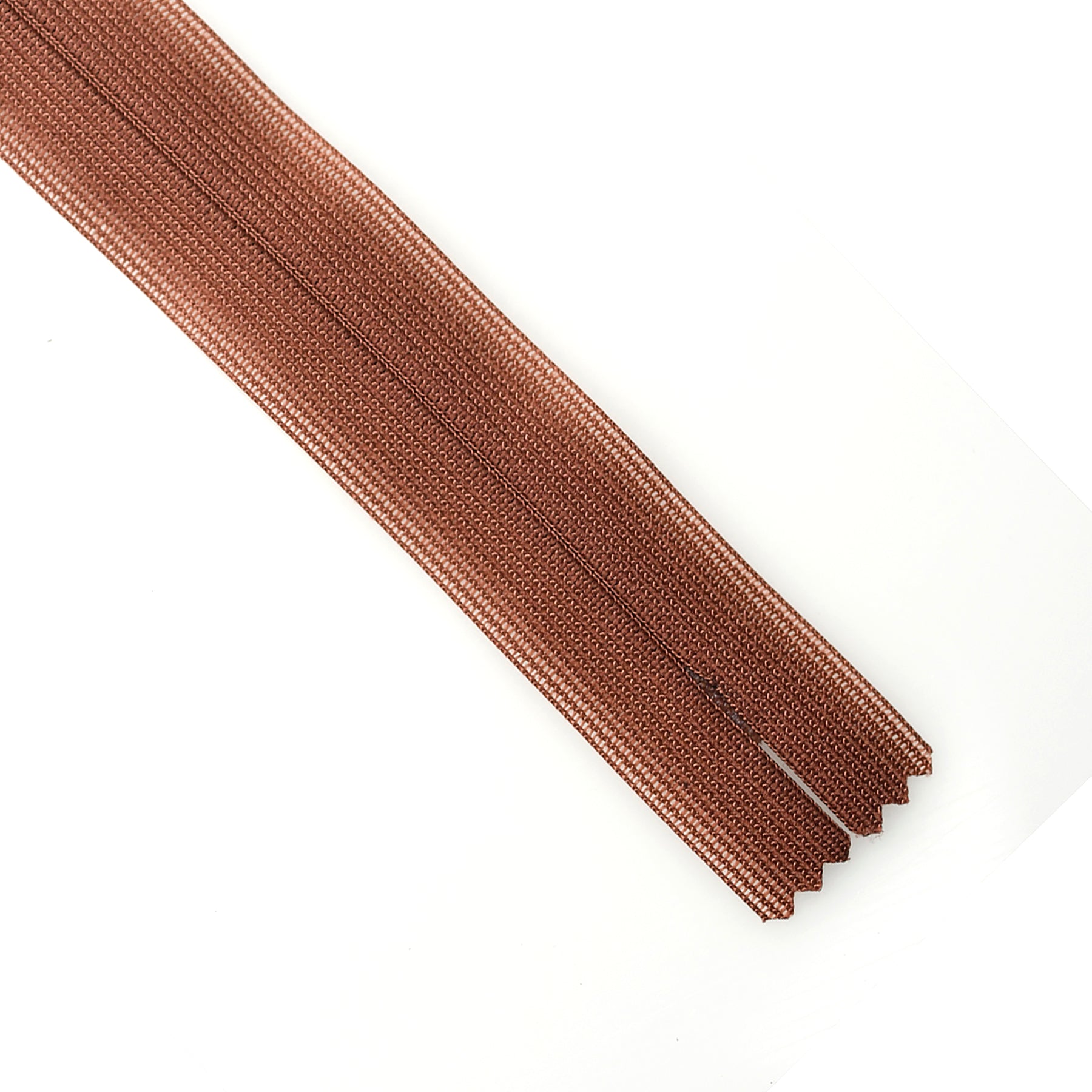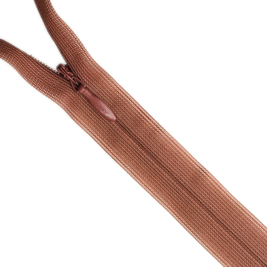 Invisible zip with lightweight mesh tape suitable for skirts, dresses, pants, soft furnishings and other applications where an unobtrusive zip is required. Discreet zip that fits into the seam with only the slim, elongated teardrop slider visible.