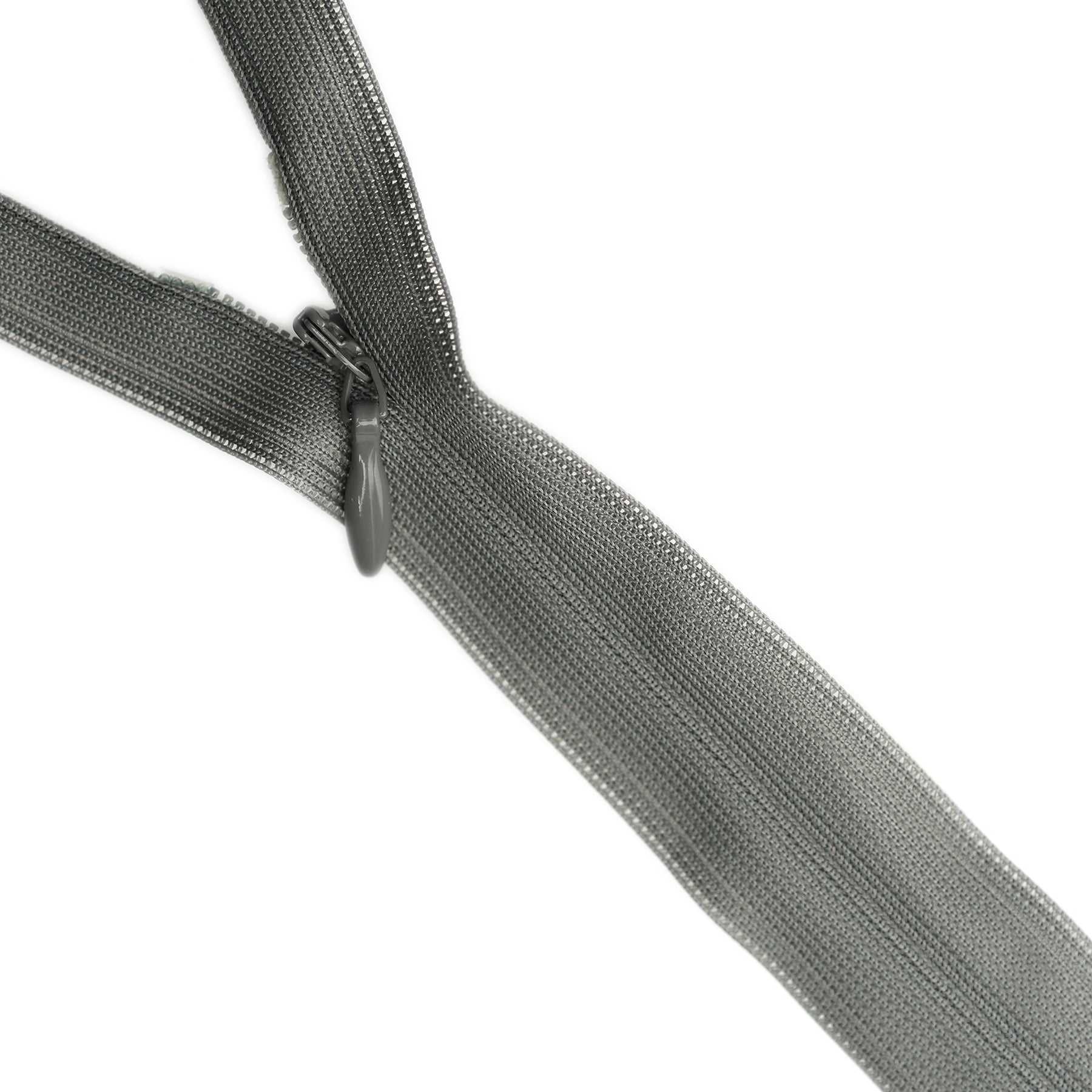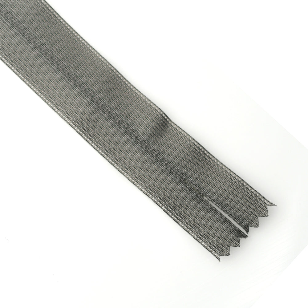 Invisible zip with lightweight mesh tape suitable for skirts, dresses, pants, soft furnishings and other applications where an unobtrusive zip is required. Discreet zip that fits into the seam with only the slim, elongated teardrop slider visible.