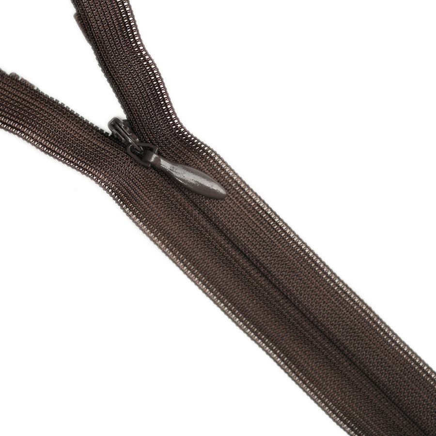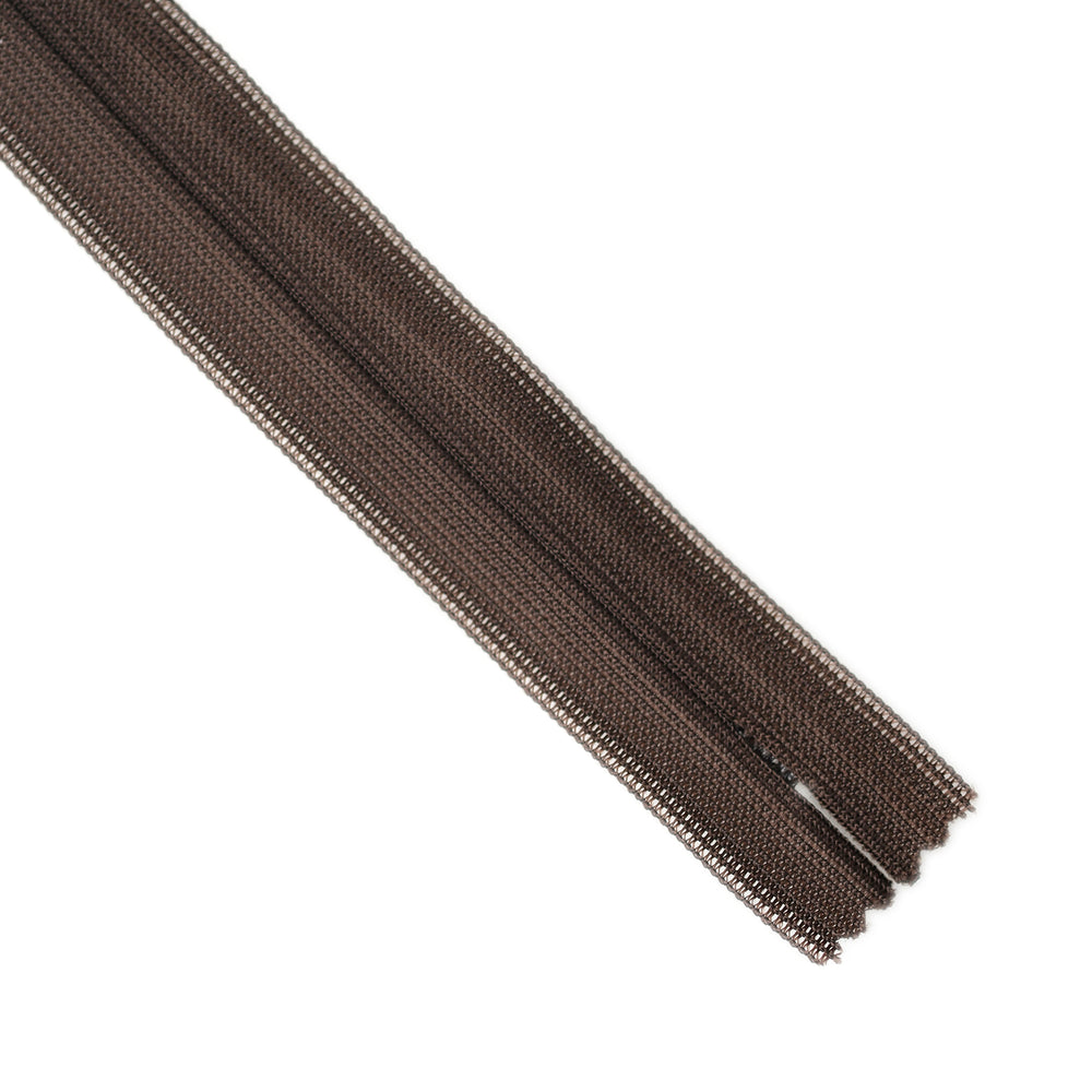 Invisible zip with lightweight mesh tape suitable for skirts, dresses, pants, soft furnishings and other applications where an unobtrusive zip is required. Discreet zip that fits into the seam with only the slim, elongated teardrop slider visible.
