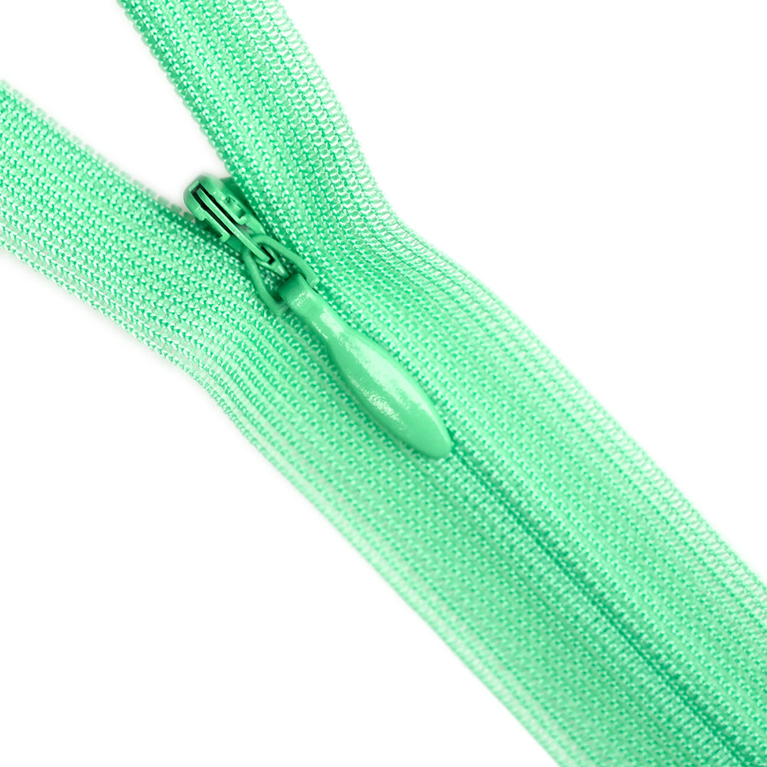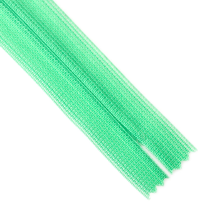 Invisible zip with lightweight mesh tape suitable for skirts, dresses, pants, soft furnishings and other applications where an unobtrusive zip is required. Discreet zip that fits into the seam with only the slim, elongated teardrop slider visible.