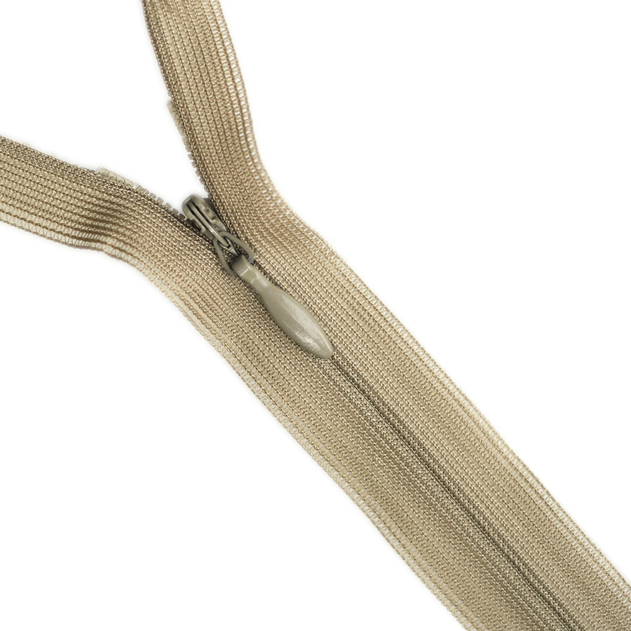 Invisible zip with lightweight mesh tape suitable for skirts, dresses, pants, soft furnishings and other applications where an unobtrusive zip is required. Discreet zip that fits into the seam with only the slim, elongated teardrop slider visible.