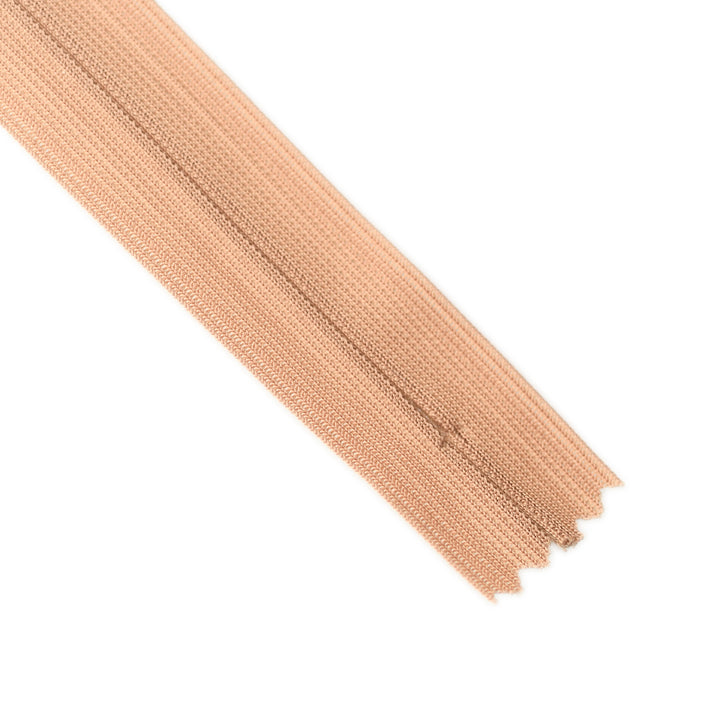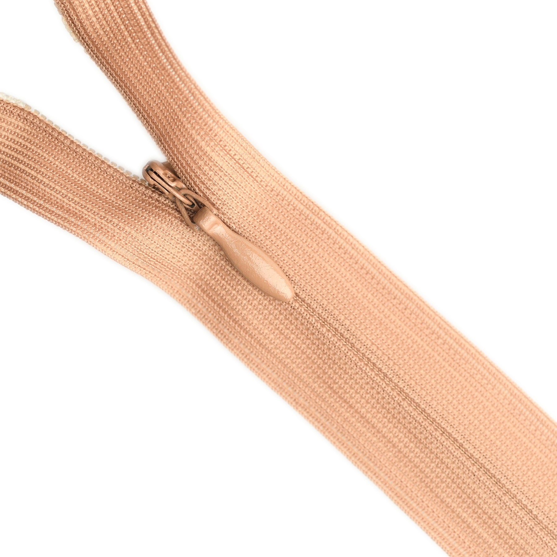 Invisible zip with lightweight mesh tape suitable for skirts, dresses, pants, soft furnishings and other applications where an unobtrusive zip is required. Discreet zip that fits into the seam with only the slim, elongated teardrop slider visible.