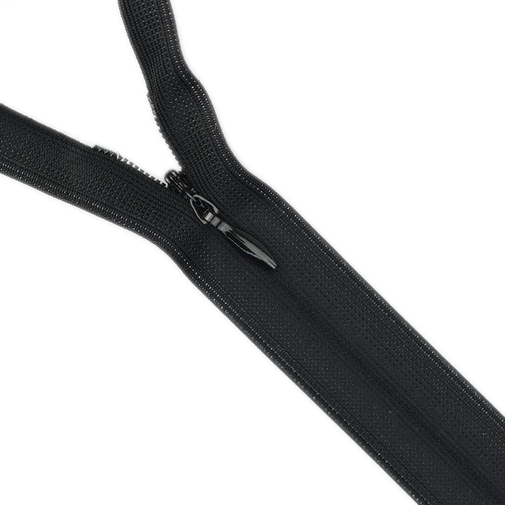 Features a quality, lightweight mesh tape suitable for skirts, dresses, pants, soft furnishings and other applications where an unobtrusive zip is required. Discreet zip that fits into the seam with only the slim, elongated teardrop slider visible.