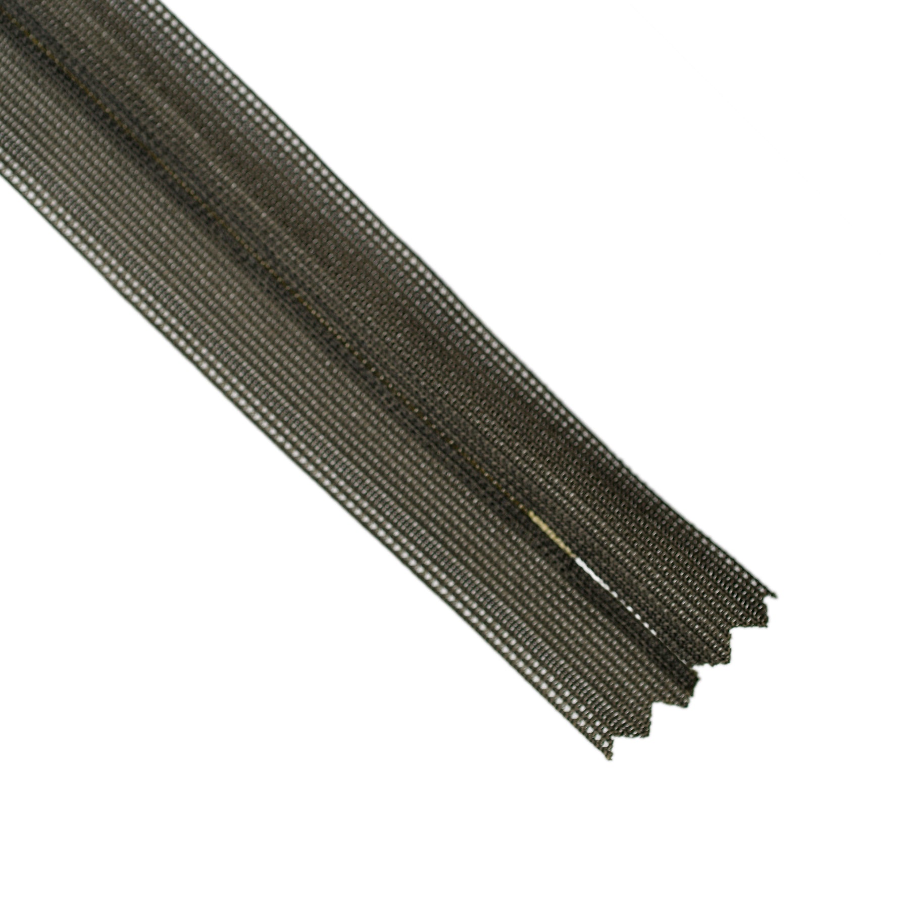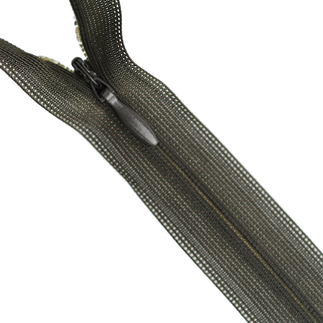 Invisible zip with lightweight mesh tape suitable for skirts, dresses, pants, soft furnishings and other applications where an unobtrusive zip is required. Discreet zip that fits into the seam with only the slim, elongated teardrop slider visible.