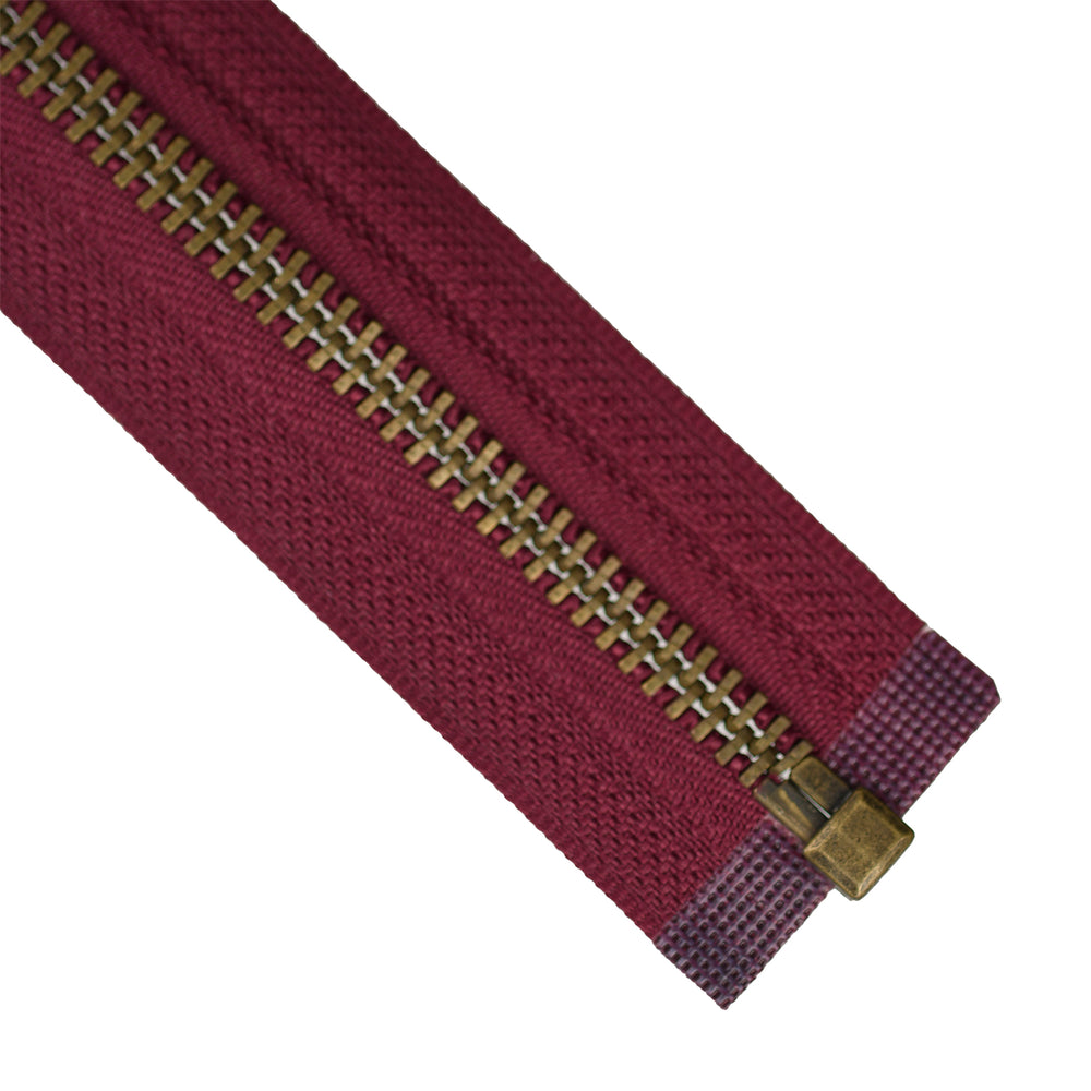 80CM METAL OPEN-END ZIP NO.5 ANTIQUE GOLD COL BURGUNDY
