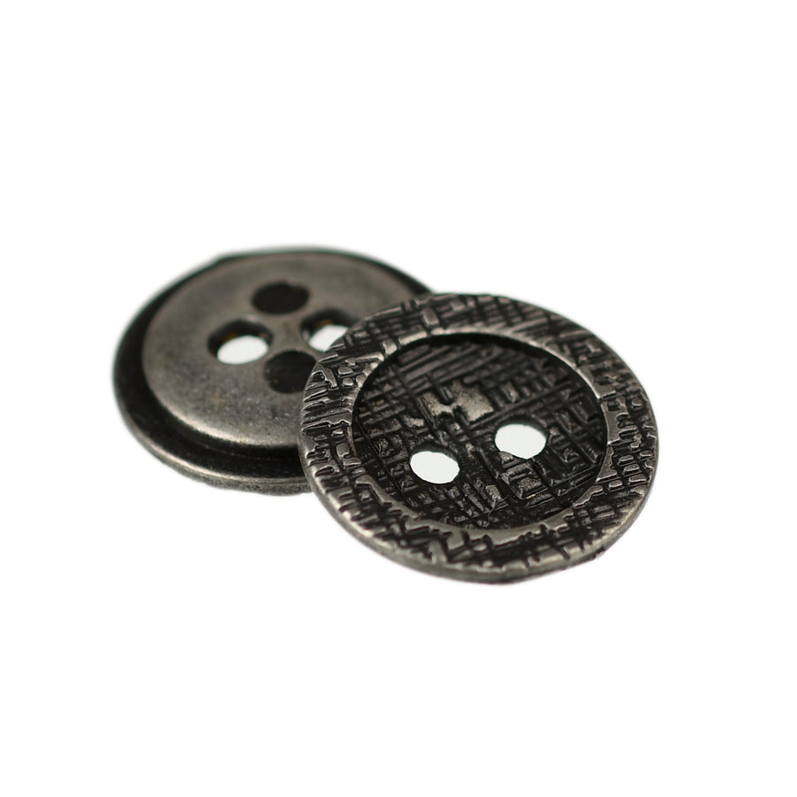 METAL TWO-HOLE TEXTURED BUTTON WITH RIM PEWTER