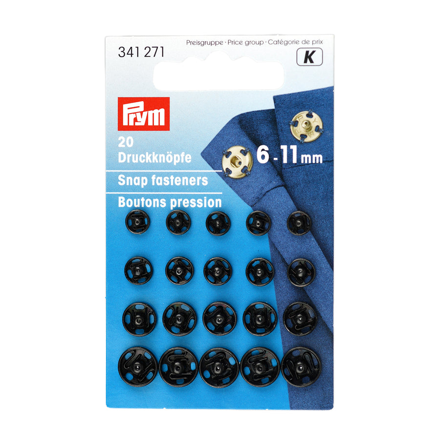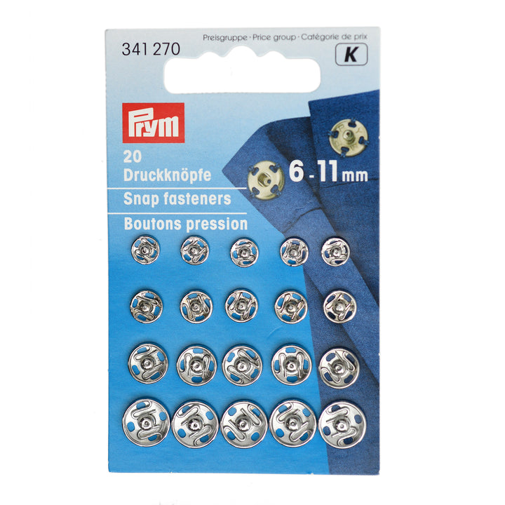 MULTI-PACK 6-11MM PRYM METAL SEW-ON SNAP FASTENERS PACK 20