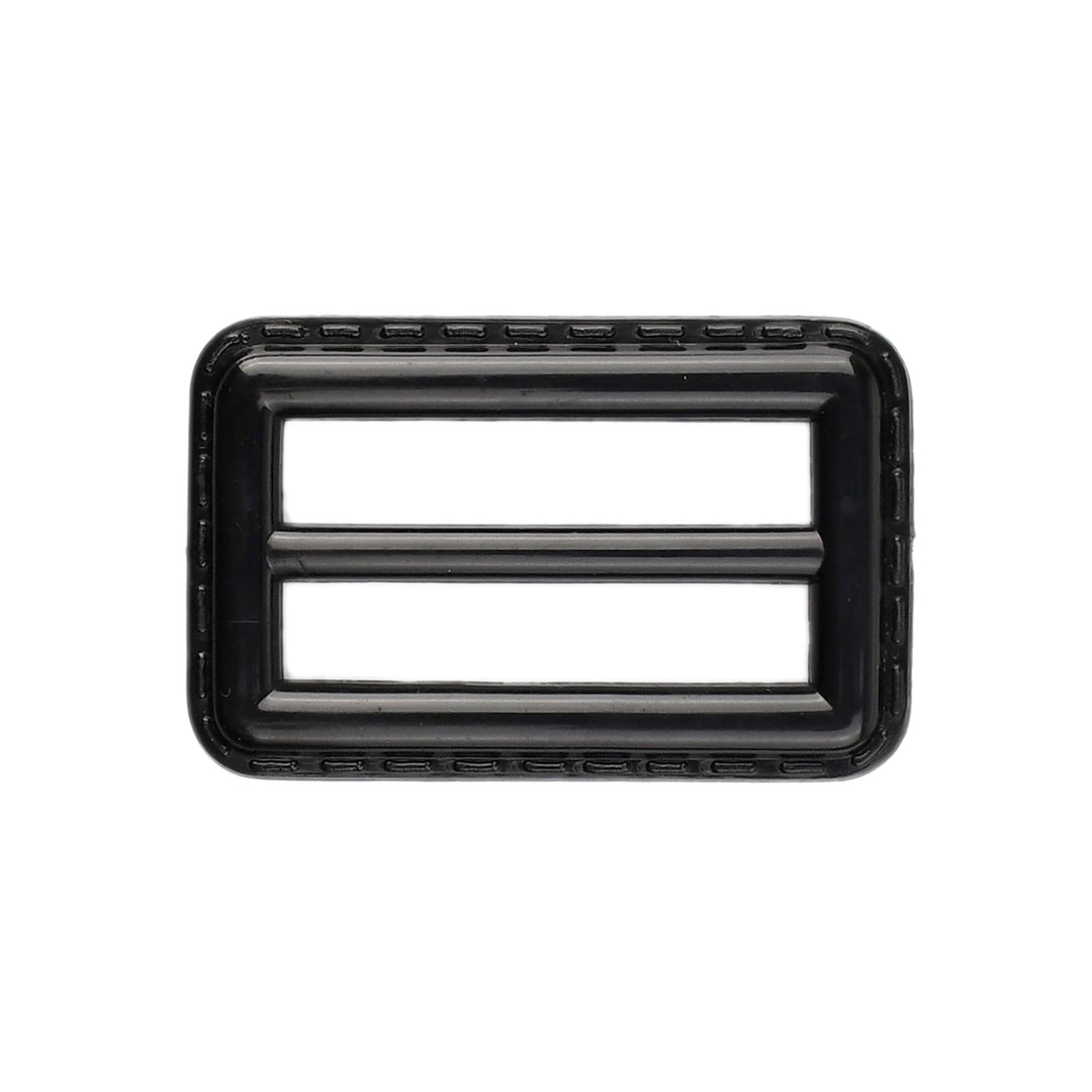 34mm hard-wearing plastic slide for use on straps, belts and bags. Features a faux stitch detail on outer edge.