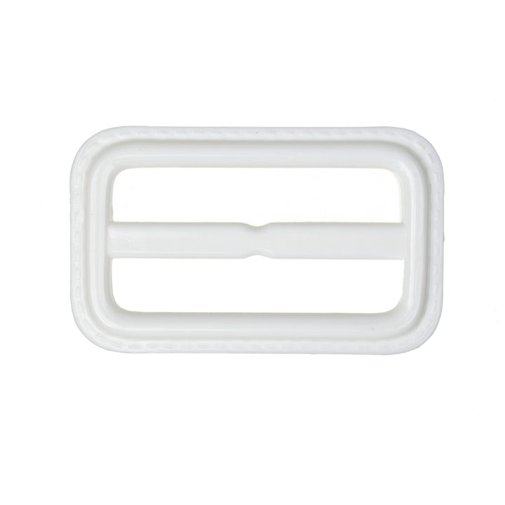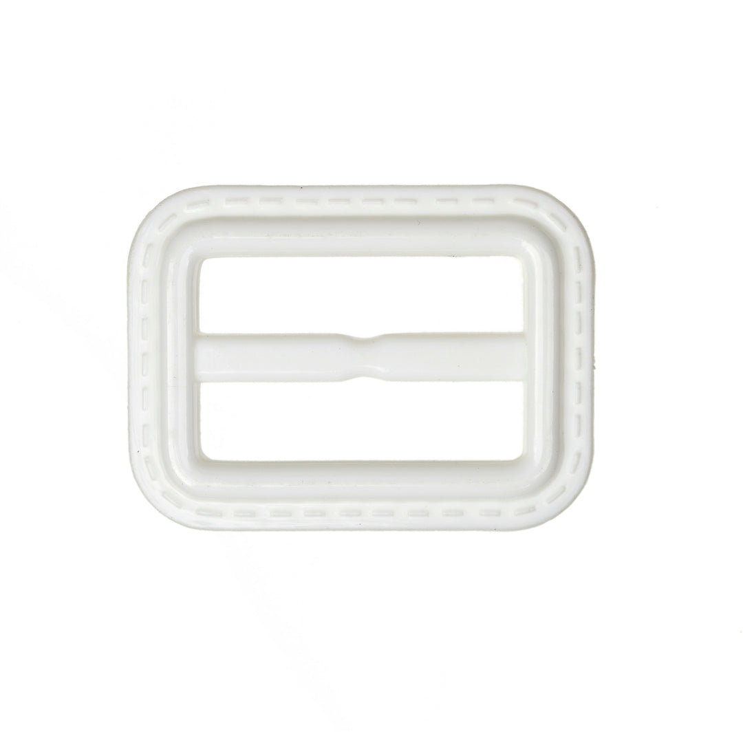 32mm hard-wearing plastic slide for use on straps, belts and bags. Features a faux stitch detail on outer edge.