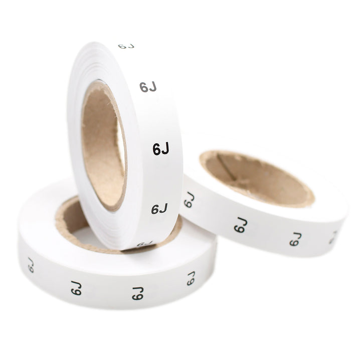 PRINTED LABELS JUNIOR SIZES 6J - 12J BLACK TEXT ON WHITE