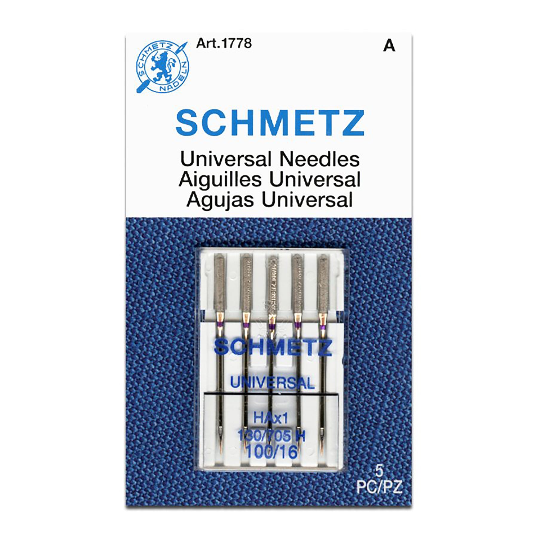 Schmetz Universal Needle features a slightly rounded point and is suitable for a wide range of woven and knit fabric. This is a great general purpose needle that is suitable for all domestic sewing machine brands.