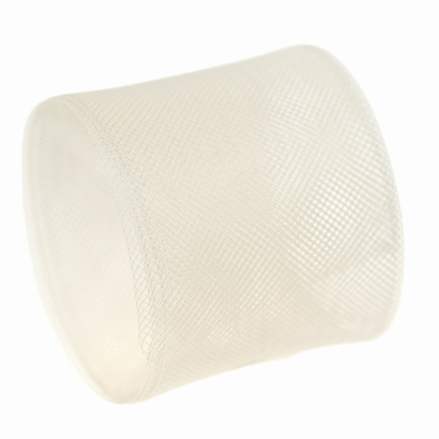 Polyester horsehair braid/ crinoline available in firm and soft textures for hems and structural garment features. Soft crinoline is suitable for flowing hems and subtle volume while the firm crinoline is ideal for shaping and stiffening structural details in garments, millinery and costume.  Ideal for bridal, formal-wear, millinery, textile art and sculpture.