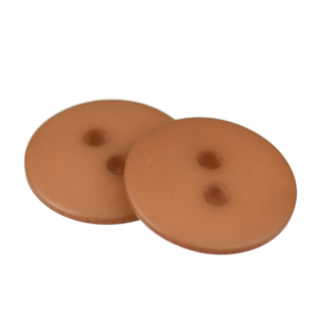 Flat, two-hole button in matte finish. Subtle disc shape provides a rounded edge.