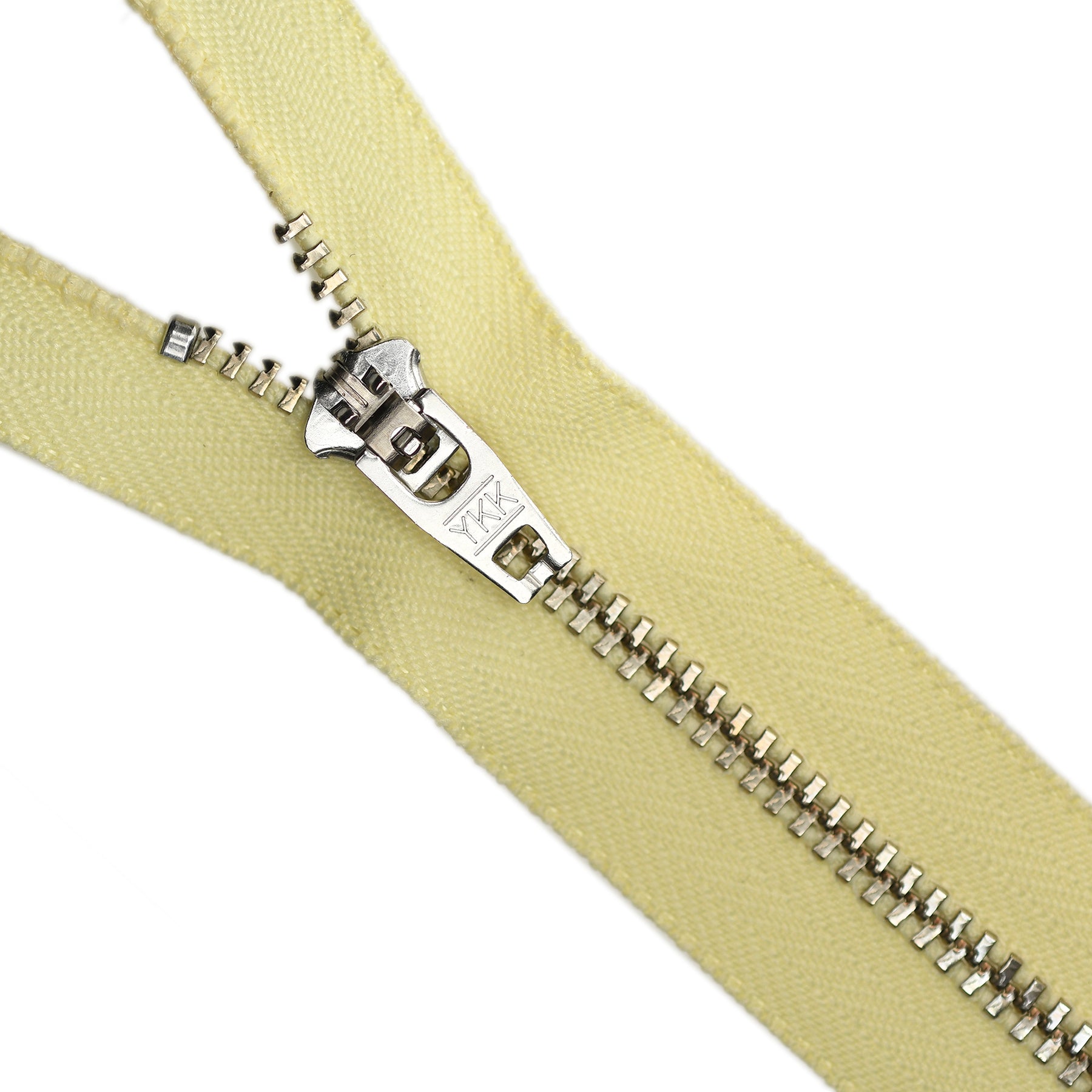 Lightweight gauge YKK jean zip designed for use on denim jeans and jackets with elements in nickel.