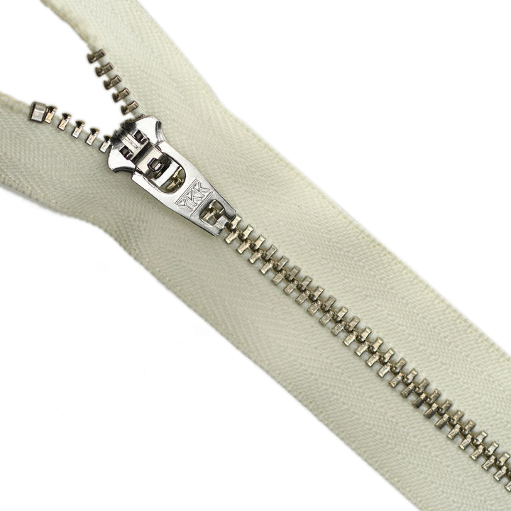 Lightweight gauge YKK jean zip designed for use on denim jeans and jackets with elements in nickel.