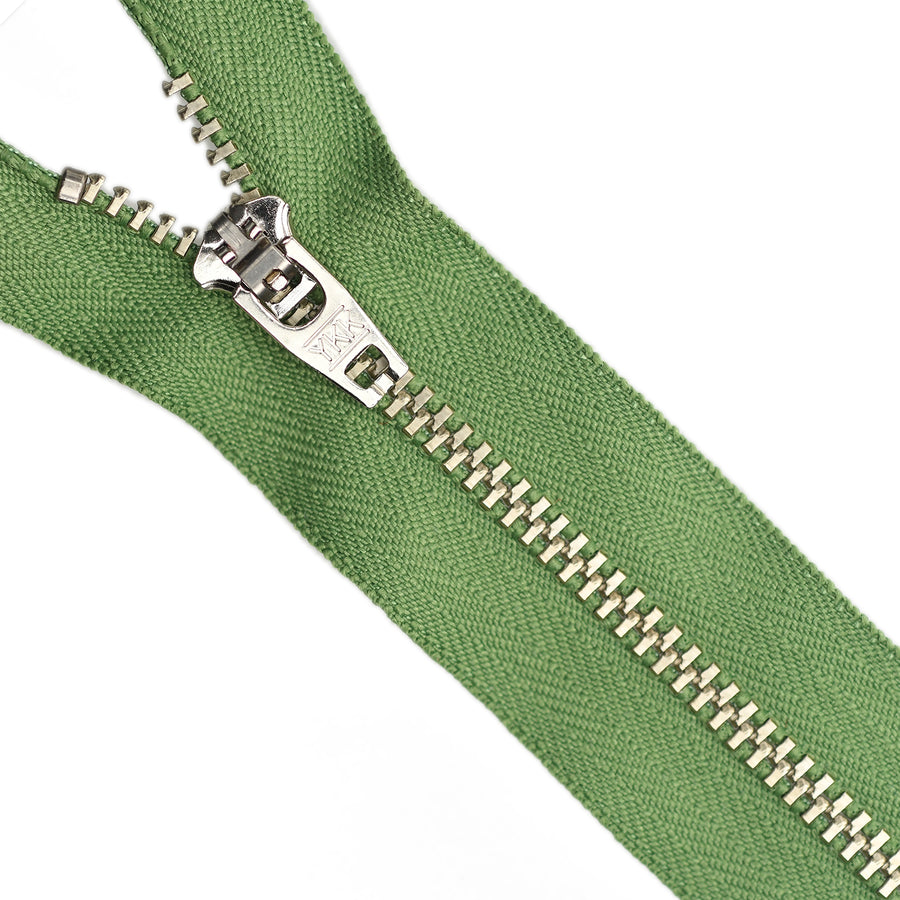 Lightweight gauge YKK jean zip designed for use on denim jeans and jackets with elements in nickel.