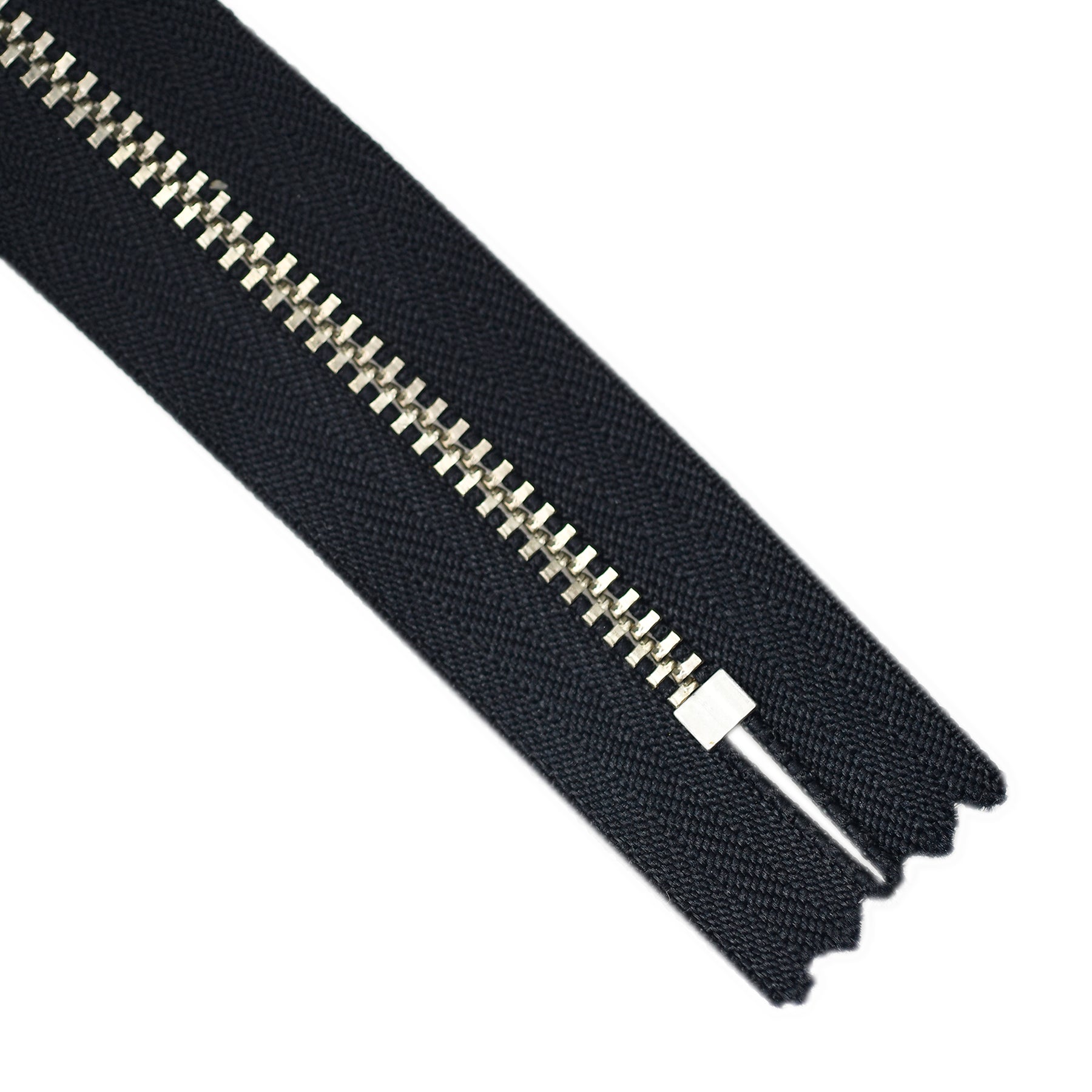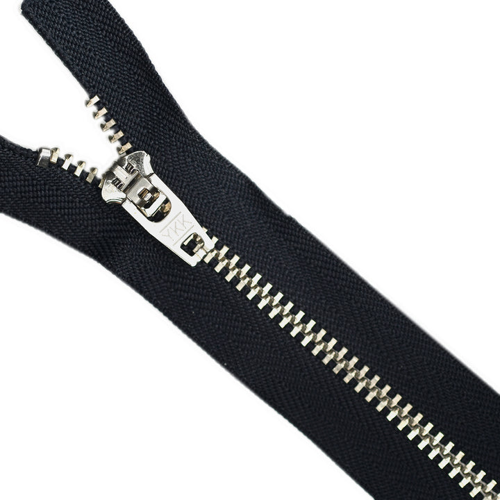 Lightweight gauge YKK jean zip designed for use on denim jeans and jackets with elements in nickel.