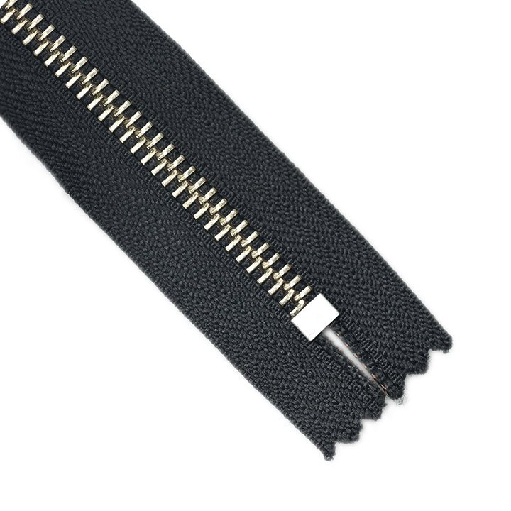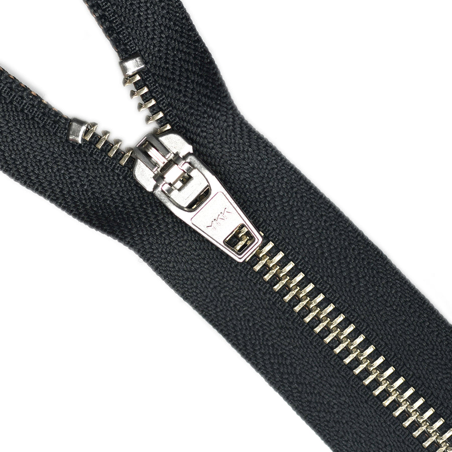 Medium gauge YKK jean zip designed for use on denim jeans and jackets with elements in nickel.